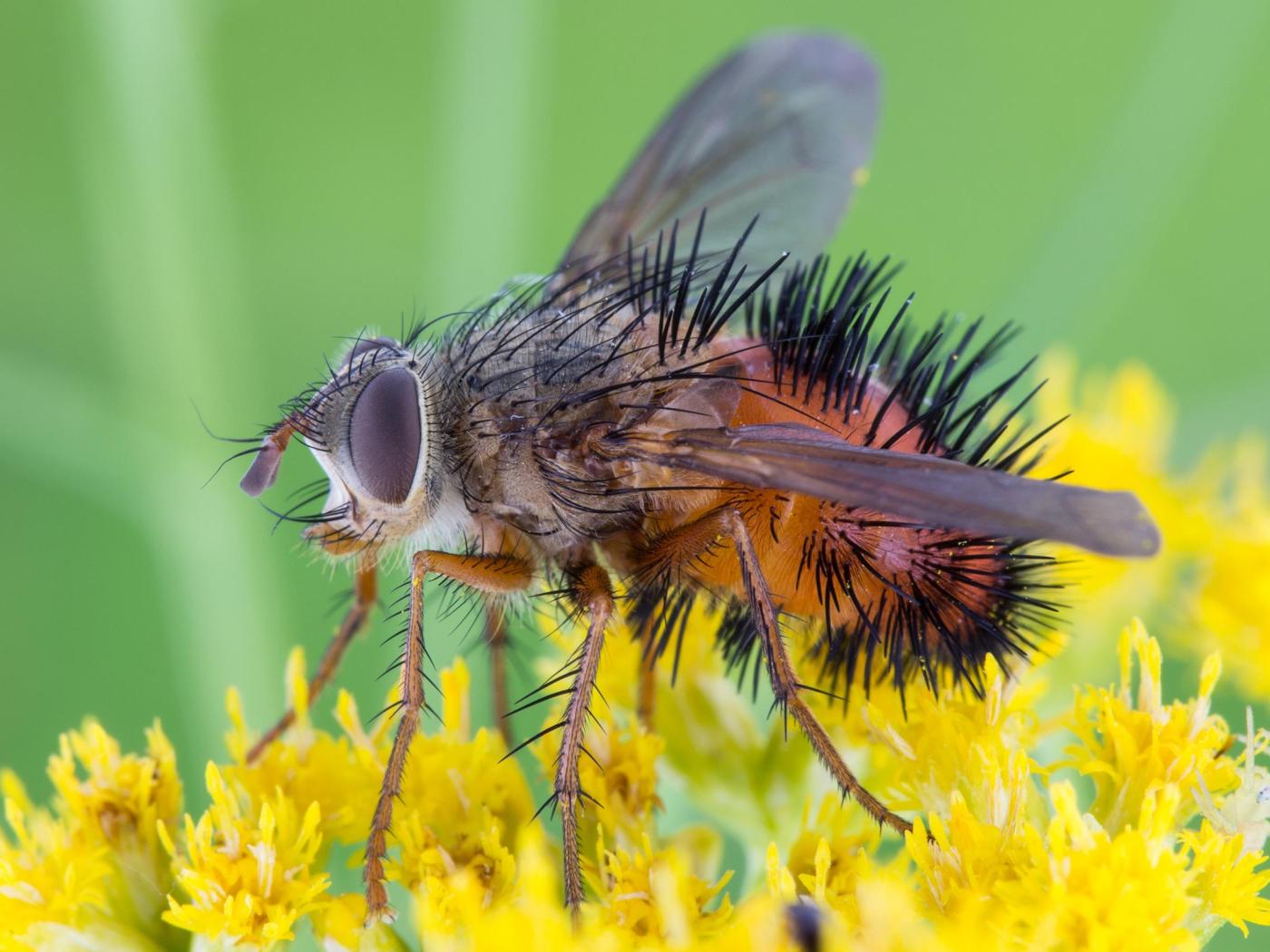 Hystricia abrupta est un insecte qui parasite certains ravageurs occasionnels des cultures. Les principaux hôtes de cette mouche sont des larves de lépidoptères appartenant à la famille des Erebidae, tels que la chenille à tente estivale (Hyphantria cunea), l'Halisidote du caryer (Halisidota caryae), l'Halisidote maculée (Lophocampa maculata), Halysidota tessellaris, Diacrisia virginica et Euchaetes egle.