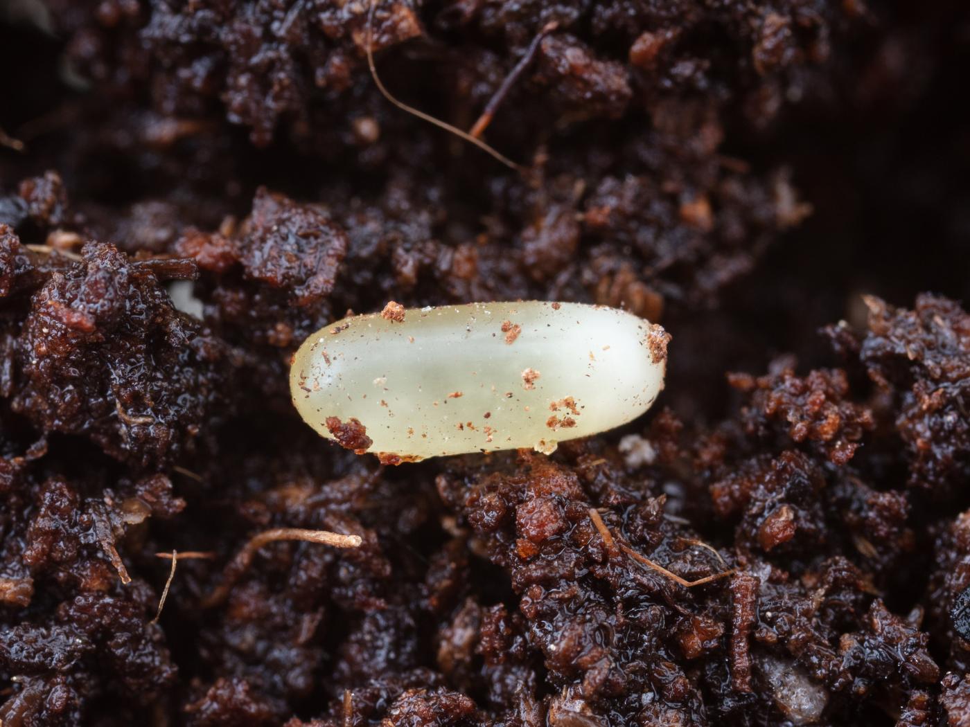 Oeuf : 1,0 à 1,5 mm; il possède la forme d'un grain de riz; il est blanc crème à la ponte.