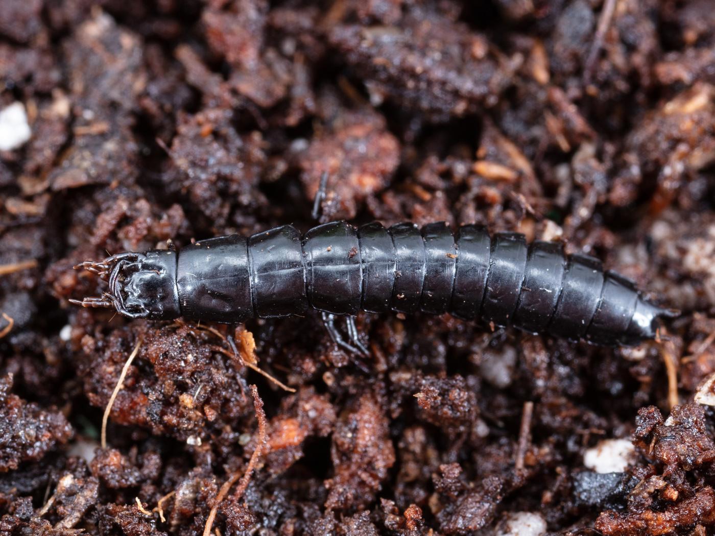 Larve : 25 mm à maturité; le corps est allongé et nettement segmenté avec des pattes bien développées et de puissantes mandibules; le corps est complètement noir et luisant.