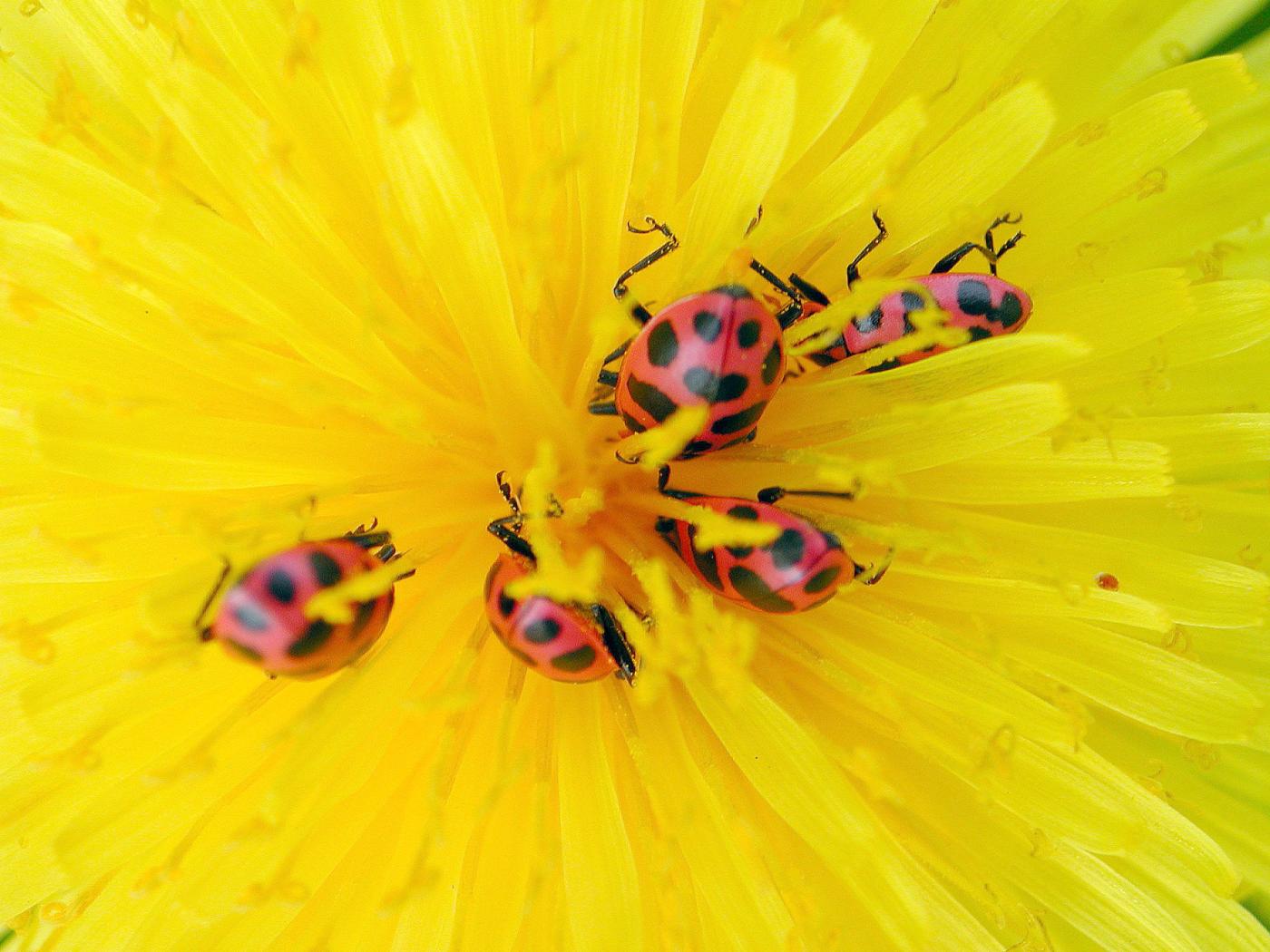 Les spores de champignons et le pollen constituent des éléments très importants de la diète de C. maculata. Durant tout le cycle de vie, le pollen peut constituer jusqu’à 50 % de sa nourriture. Contrairement aux autres espèces de coccinelles d’Amérique du Nord, C. maculata peut compléter son cycle de vie seulement en se nourrissant de pollen, ce qui lui permet de survivre à de longues périodes sans proies.