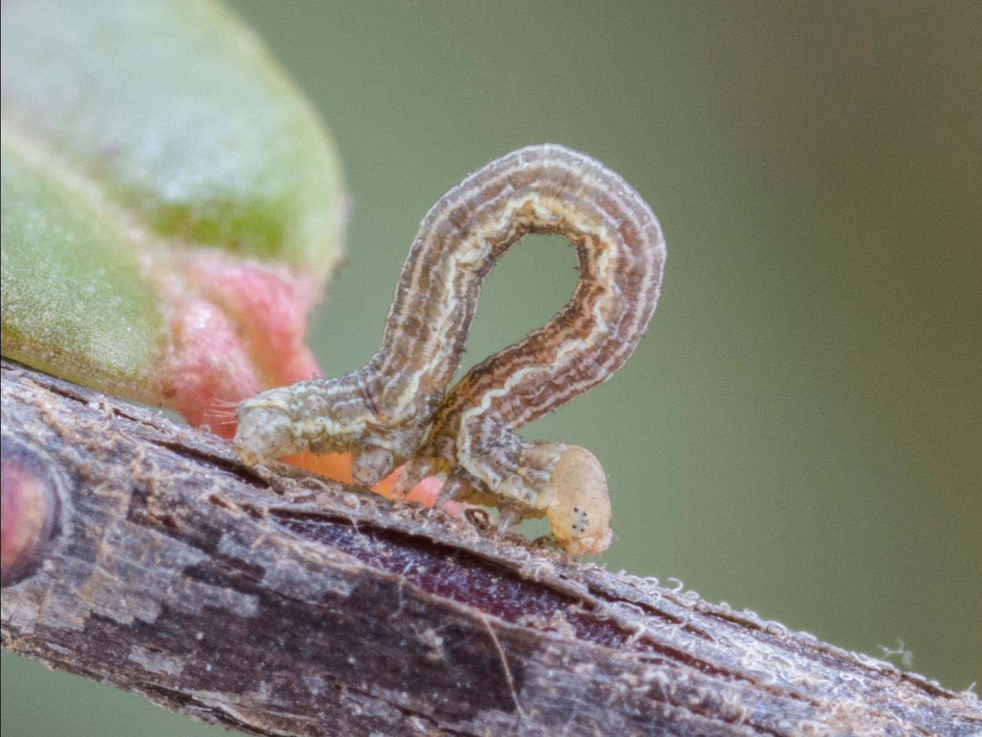 Larve : 25,0 mm à maturité; la tête est brun roux, le dos brunâtre; les côtés de chaque segment présentent une tache noire allongée; les taches noires sont séparées d’une tache blanche de la même taille; la larve possède deux paires de fausses pattes.