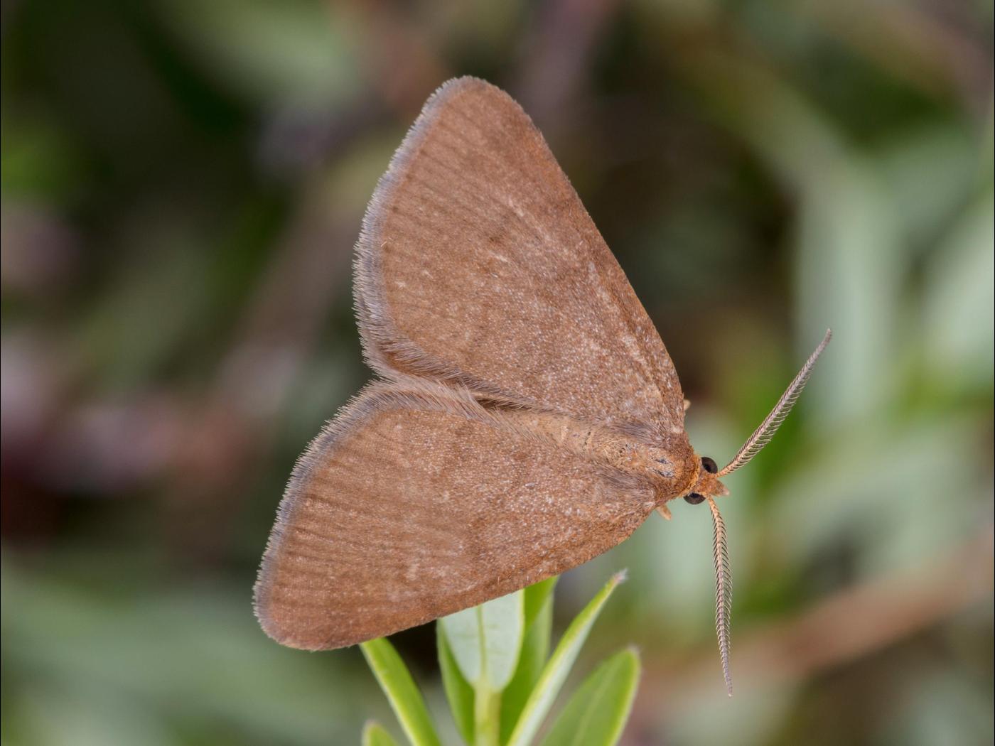 Adulte : chez la femelle, l’envergure des ailes est de 20,0 à 27,0 mm; les ailes sont rousses ou orange brûlé; quatre taches foncées sont présentes sur la marge antérieure des ailes antérieures et se prolongent parfois en lignes transverses; les ailes postérieures possèdent quatre taches foncées sur la frange ainsi qu’une bande transverse diffuse au milieu; chez le mâle, les ailes sont complètement brun roux.
