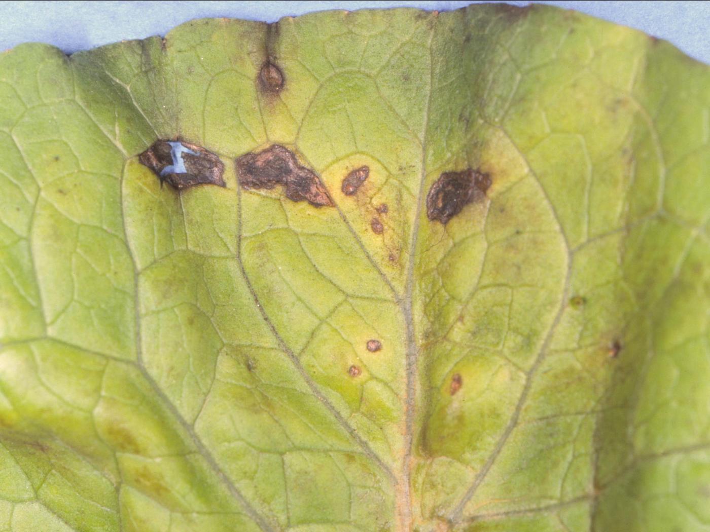 Blancard D., Lot H. & Maisonneuve B. (2003). Taches foliaires et pourriture de la pomme. Dans Maladies des salades – Identifier, connaître et maîtriser. INRA éd., Paris. p. 283-284.