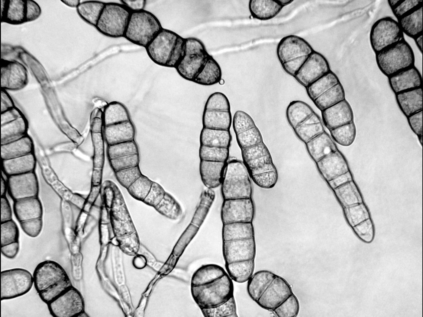 • Conidies : Conidies cylindriques ou obclavées (= en forme de massue inversée). Dictyospores (2-12 septations transversales et 0-1 septation longitudinale ou oblique). Sans rustrum; cellules arrondies aux deux extrémités. Paroi lisse. Hyalines à brunâtres. Constriction au niveau des septations transversales. Conidies généralement solitaires, ou occasionnellement en courte chaîne de 2 conidies. Dimension : 45-145 x 10-30 µm.