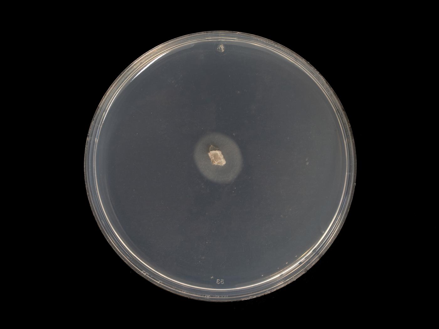 Légende: Cadophora luteo-olivacea sur milieu SNA après 22 jours de croissance.