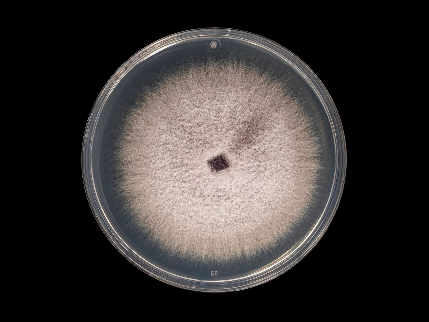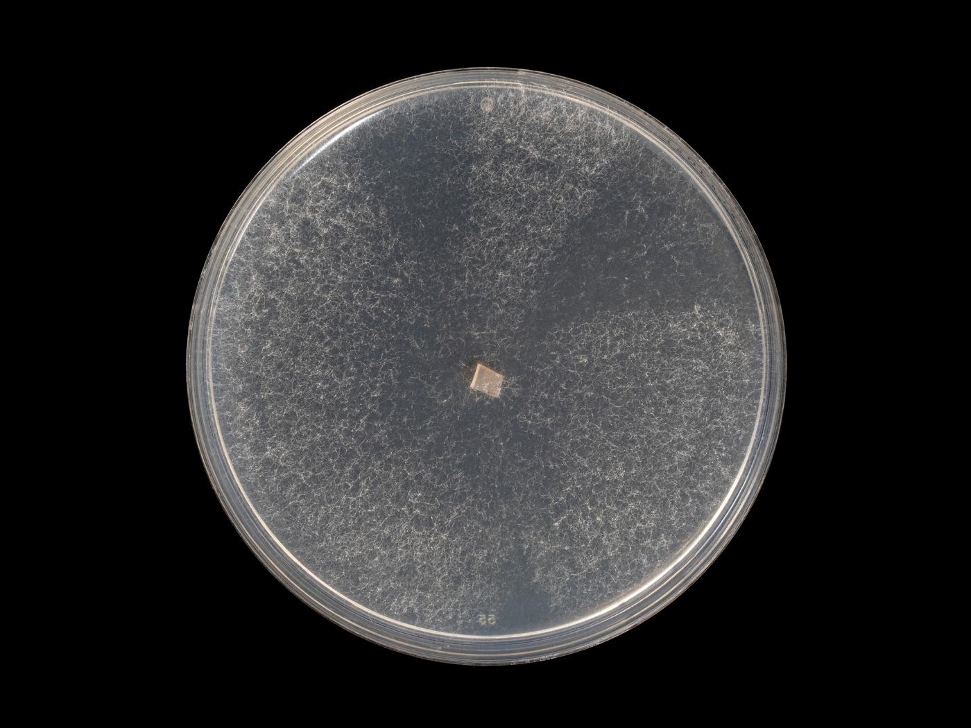 Légende: Fusarium oxysporum sur milieu SNA après 14 jours de croissance.
