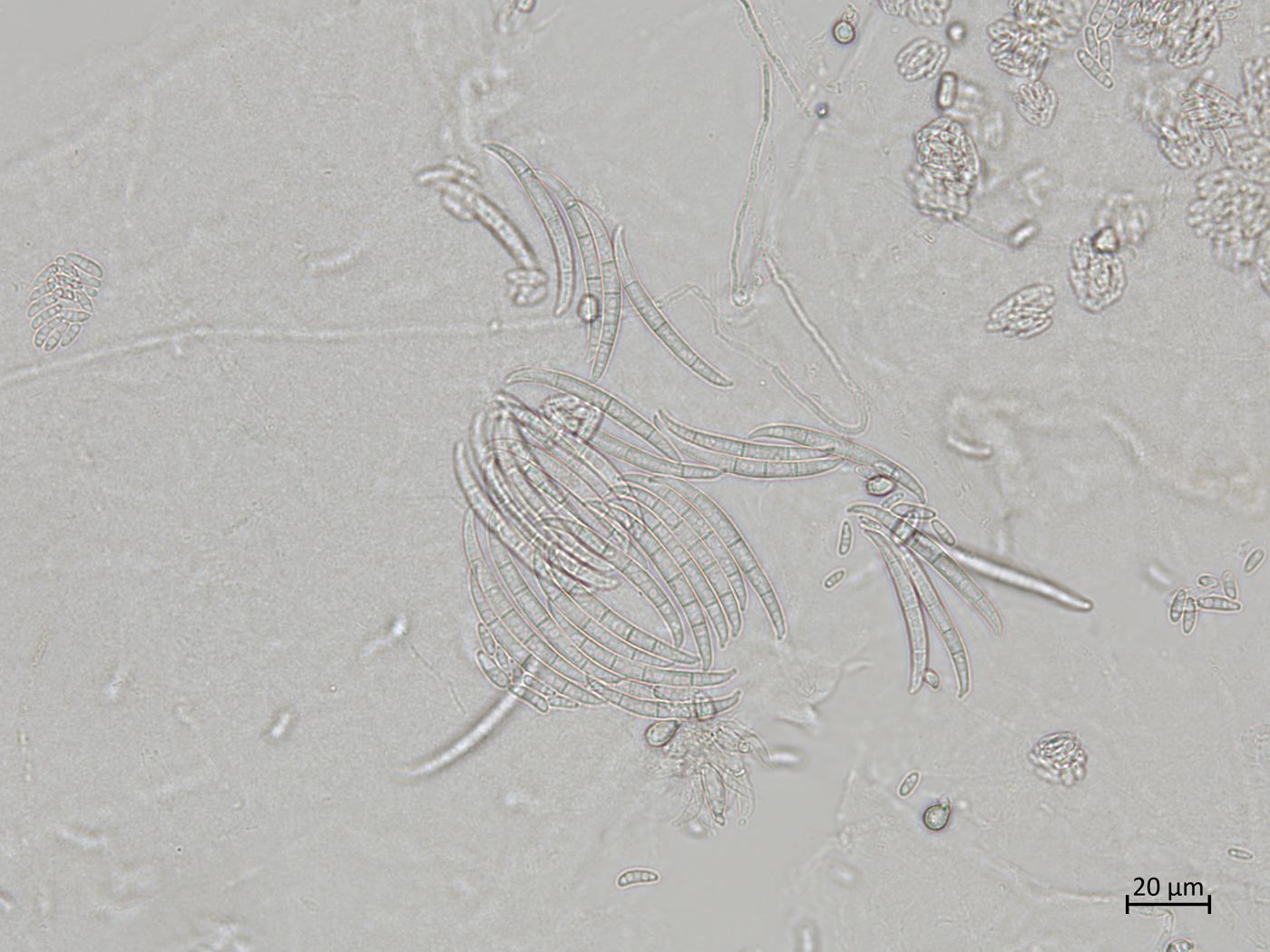 Légende: Conidies de Fusarium oxysporum.