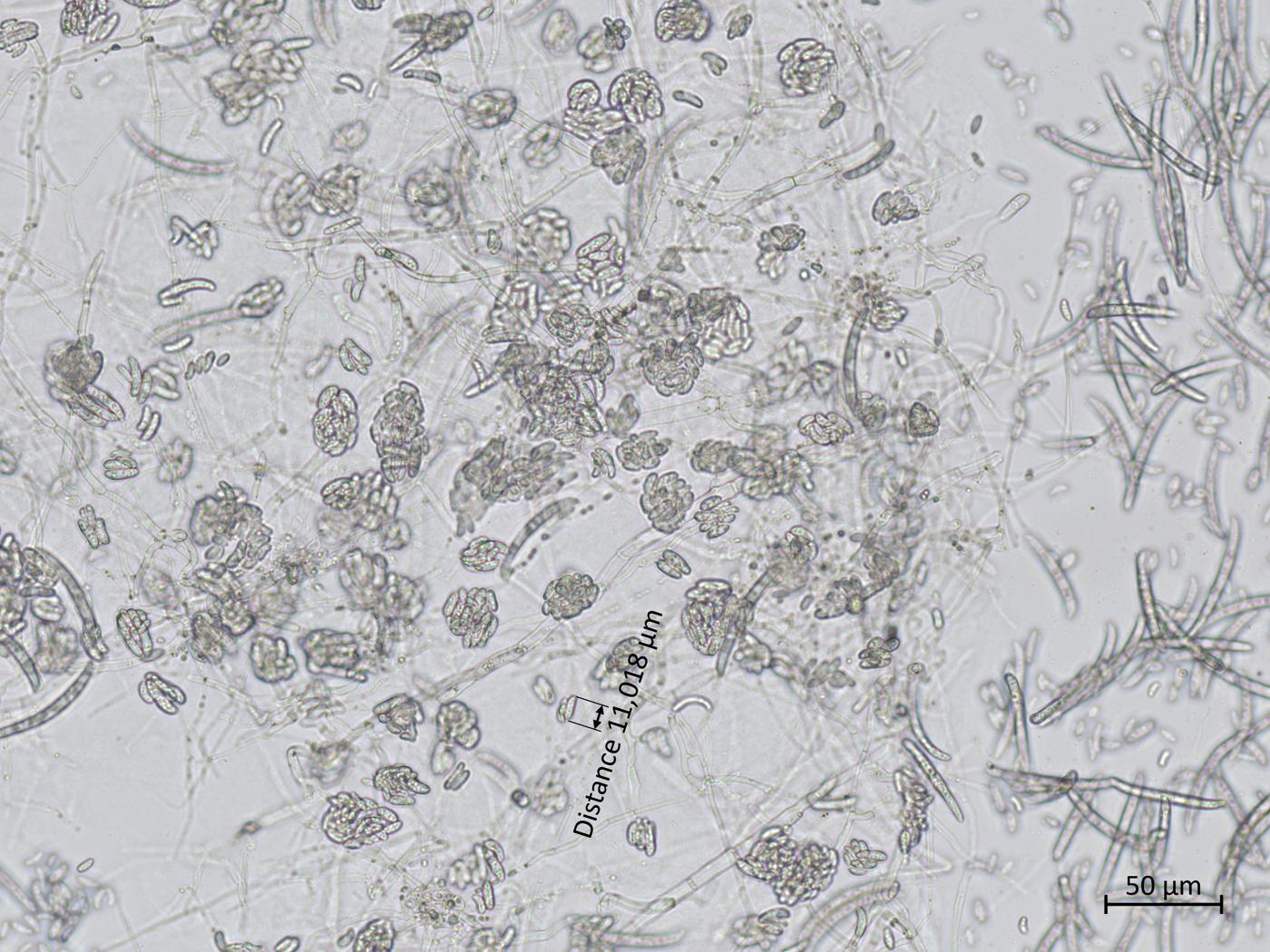 Microconidies : habituellement aucune septation (amérospores) et plus rarement une septation (didymospores). De forme variable (ovale, ellipsoïde, réniforme (en forme de rein) et fusiforme). Agglomérées ou produites en chaînes. Provenant du mycélium aérien. Dimension : 9-16 x 2-4 µm. Produites par de longues (45-80 µm) monophialides (absence de polyphialide).