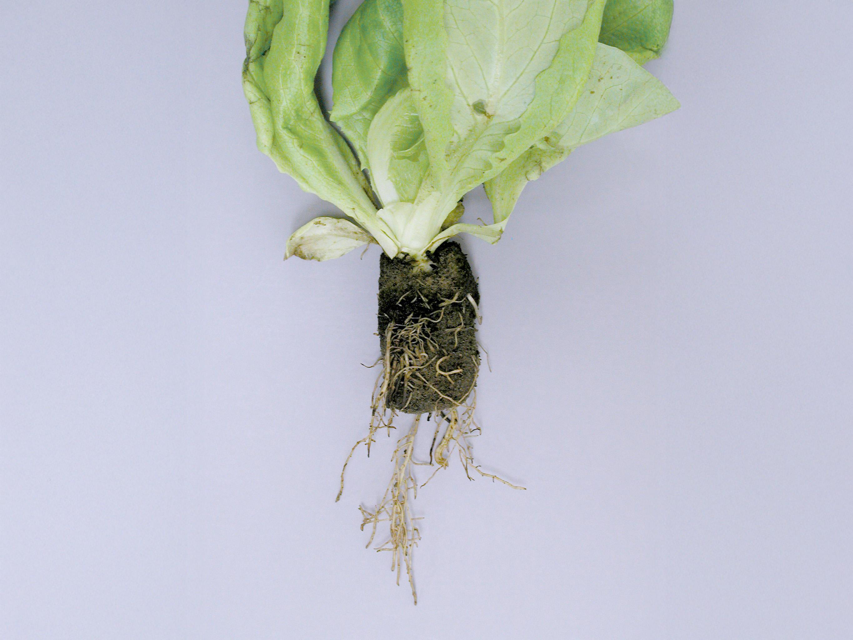 La laitue cultivée en culture hydroponique est particulièrement sensible à Pythium et à un degré moindre, aux Phytophthora spp. Les principales maladies sont la fonte des semis et la pourriture des racines (pourridié pythien) sur les plantes plus développées. La pourriture des racines se développe surtout sur les plants stressés et elle affecte essentiellement les radicelles. Pythium dissotocum et P. aphanidermatum sont communément rapportés chez la laitue hydroponique, le basilic, l’épinard et le haricot. Pythium dissotocum se manifeste lorsque la température du sol varie entre 17 et 22 °C tandis que P. aphanidermatum préfère des températures supérieures à 23 °C. Les plants affectés sont distribués en foyer ou de manière éparse. Il n’existe aucune variété de laitue résistante.