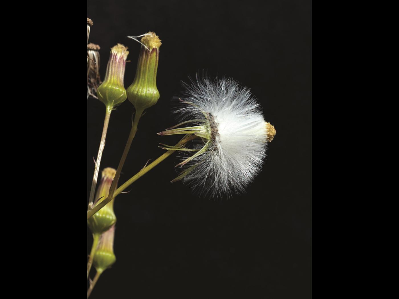 Légende: Capitules, soies plumeuses et graines (akènes) à maturité
