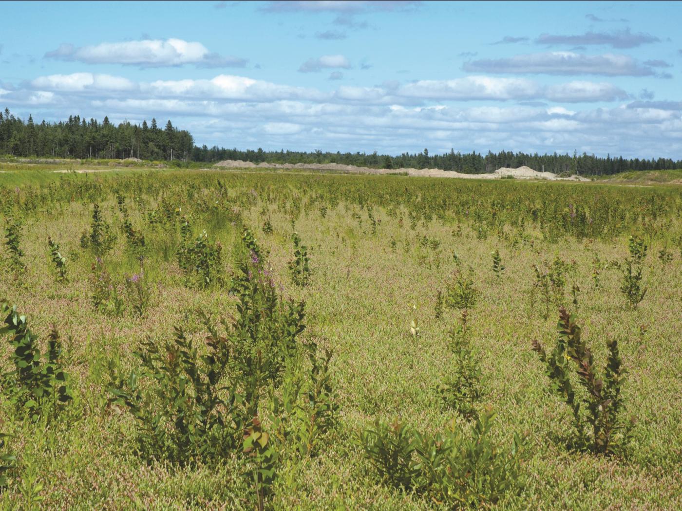 Légende: Forte infestation d'un champ de canneberges (noter la présence d'arbustes)
