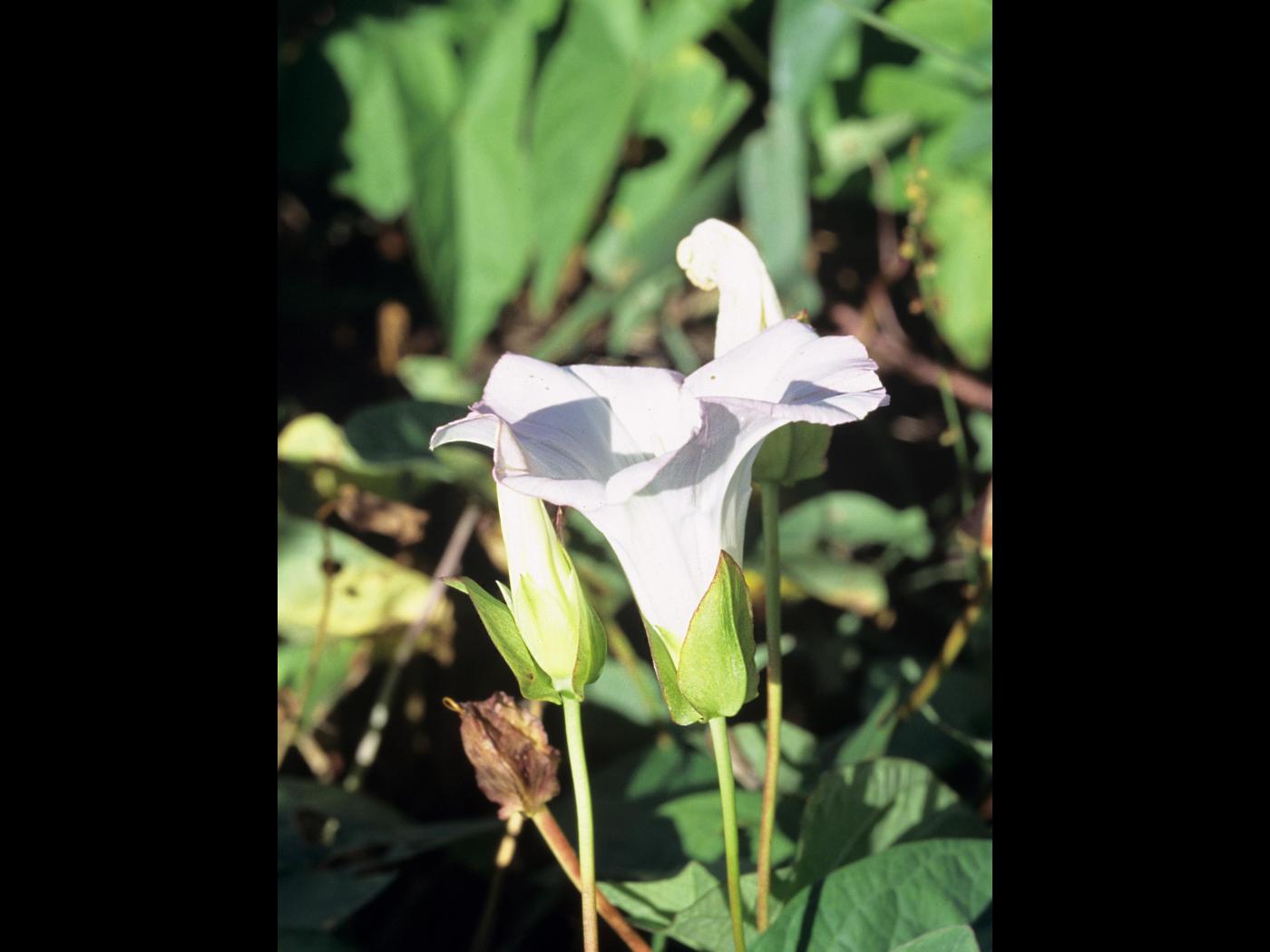 Les fleurs sont solitaires au bout d’un pédoncule qui mesure de 5 à 15 cm de longueur. Deux bractées feuillées qui mesurent de 1 à 3 cm entourent les cinq sépales présents à la base de la fleur. Les 5 pétales sont soudés et forment un tube qui a l’allure d’une trompette. La fleur est rose ou blanche et mesure de 3 à 7 cm de longueur.