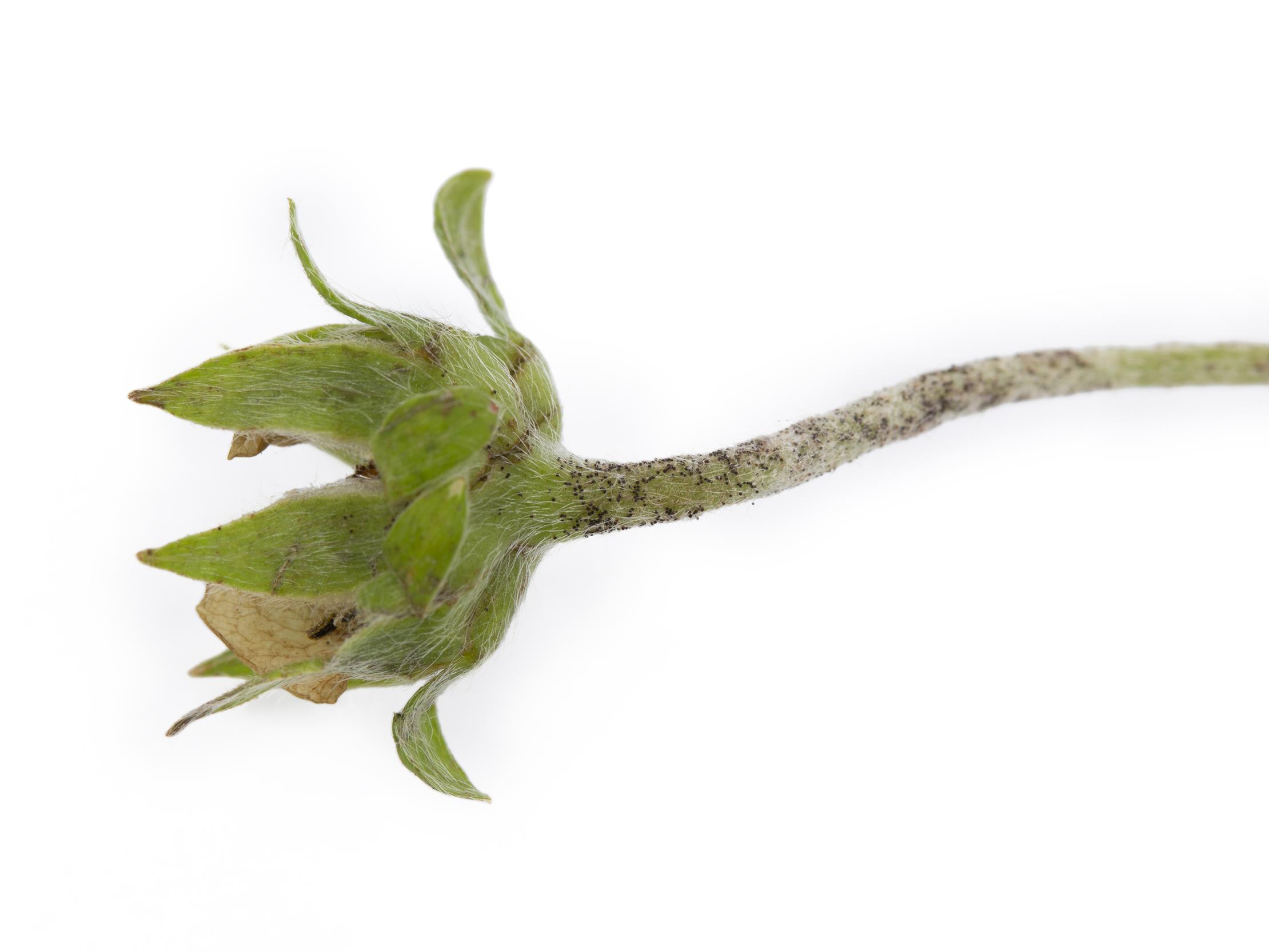 Fruit : les fruits verts deviennent durs et secs et les fruits mûrs sont mous et cuivrés. Les akènes se soulèvent et se couvrent d’un duvet blanc. Présence parfois de taches rouges sur les sépales.