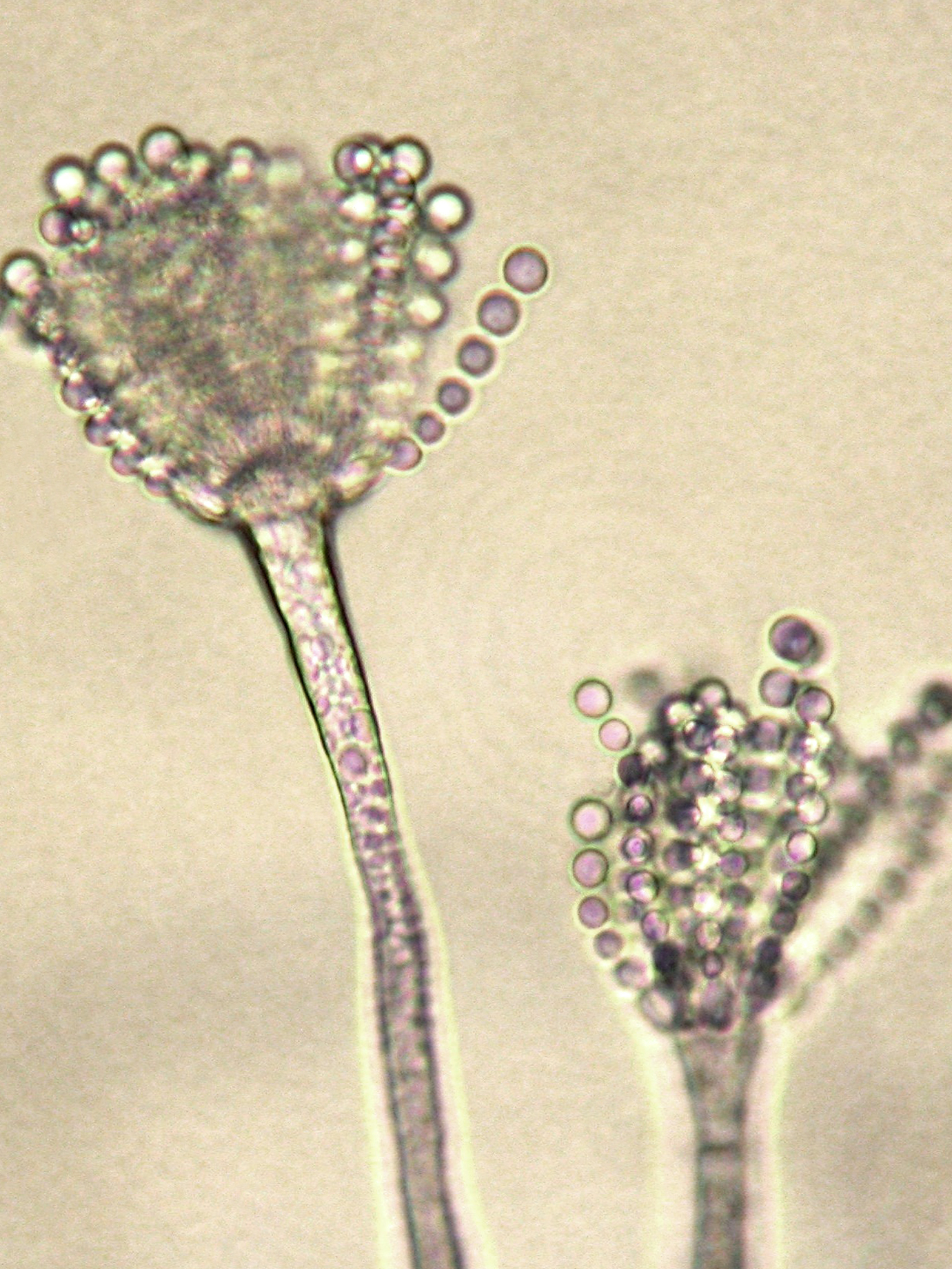Têtes conidiennes et conidiophores d'Aspergillus sp.