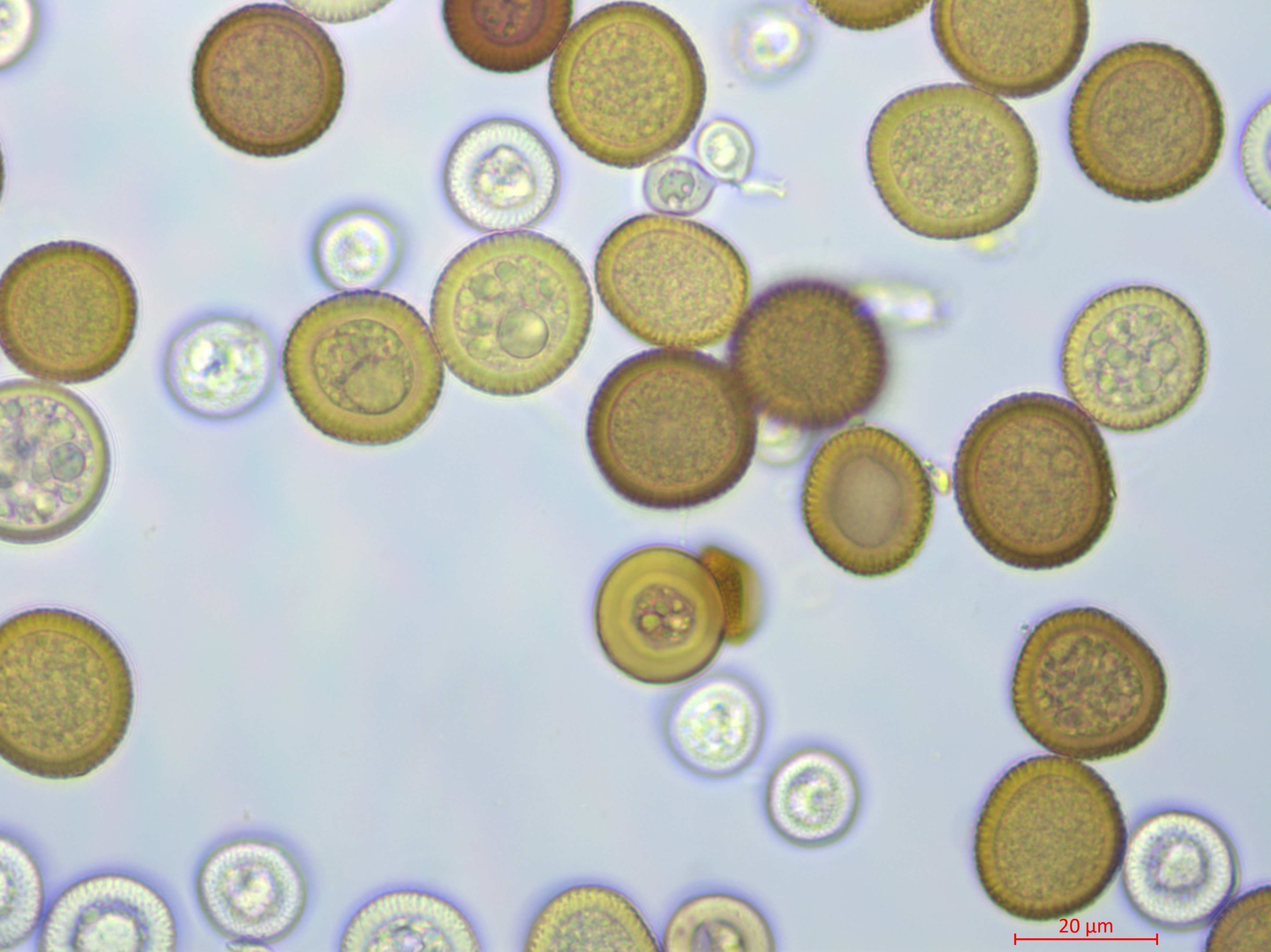 Téliospores de Tilletia maclaganii retrouvées dans les inflorescences d’un panic érigé
