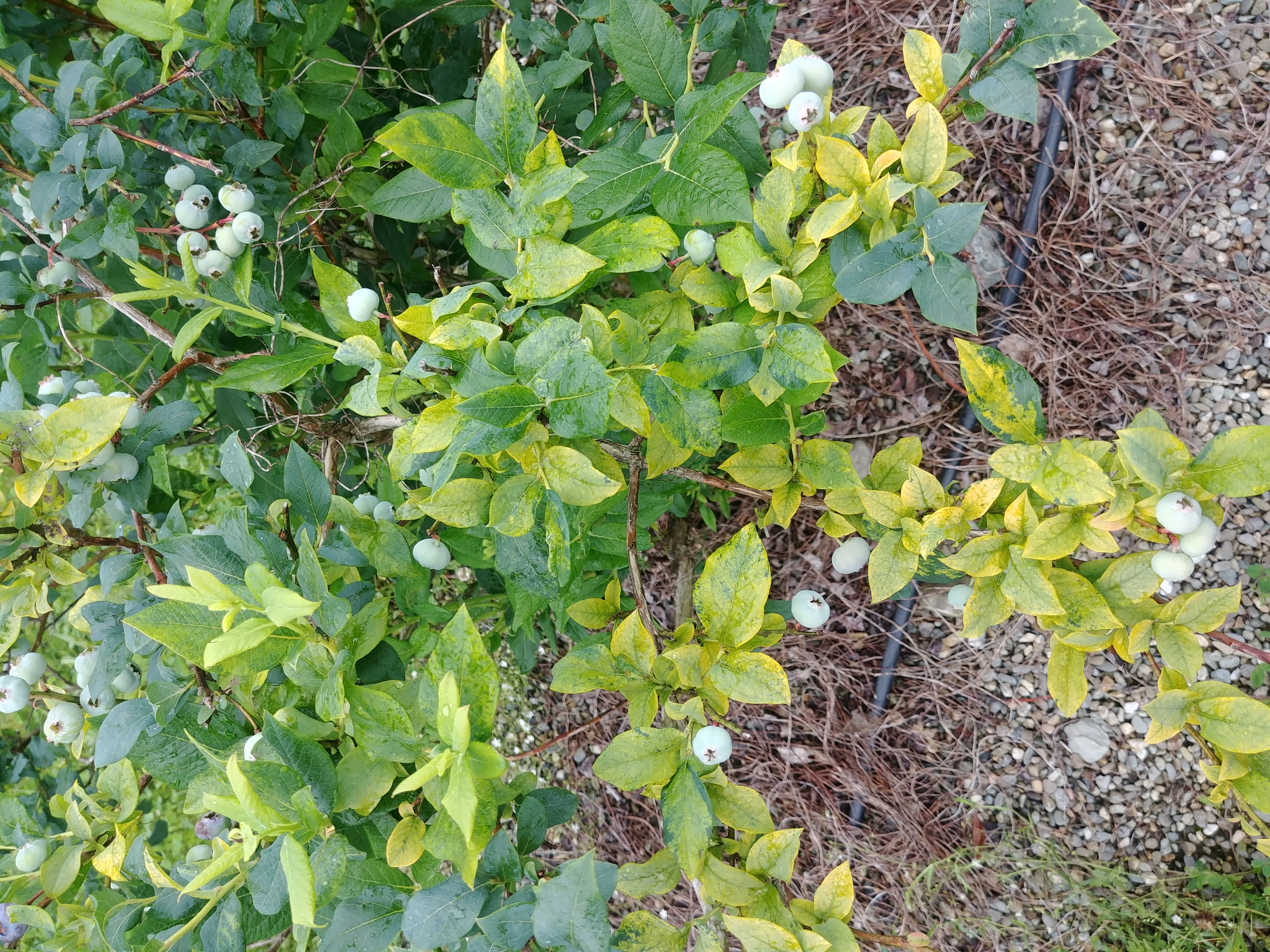 Symptômes du virus de la mosaïque du bleuet (BlMav) sur un plant de bleuet en corymbe (cv. Patriot)