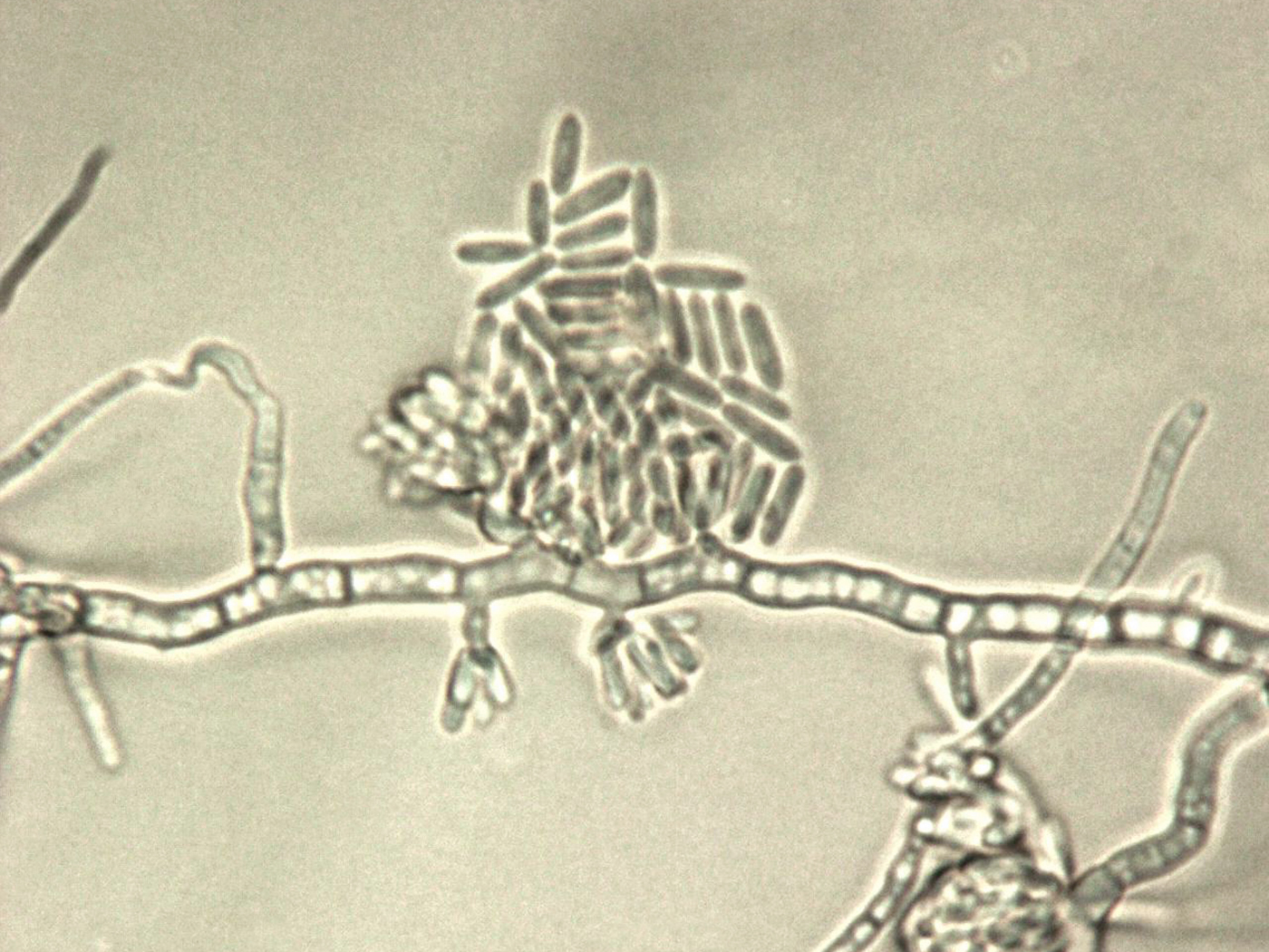 Hyphes et conidies de Aureobasidium.