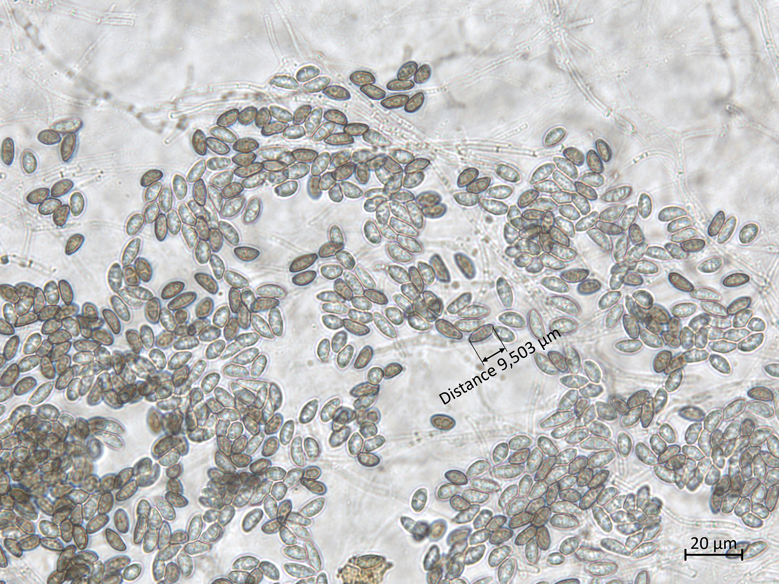 Dimension de conidies de Coniella diplodiella.