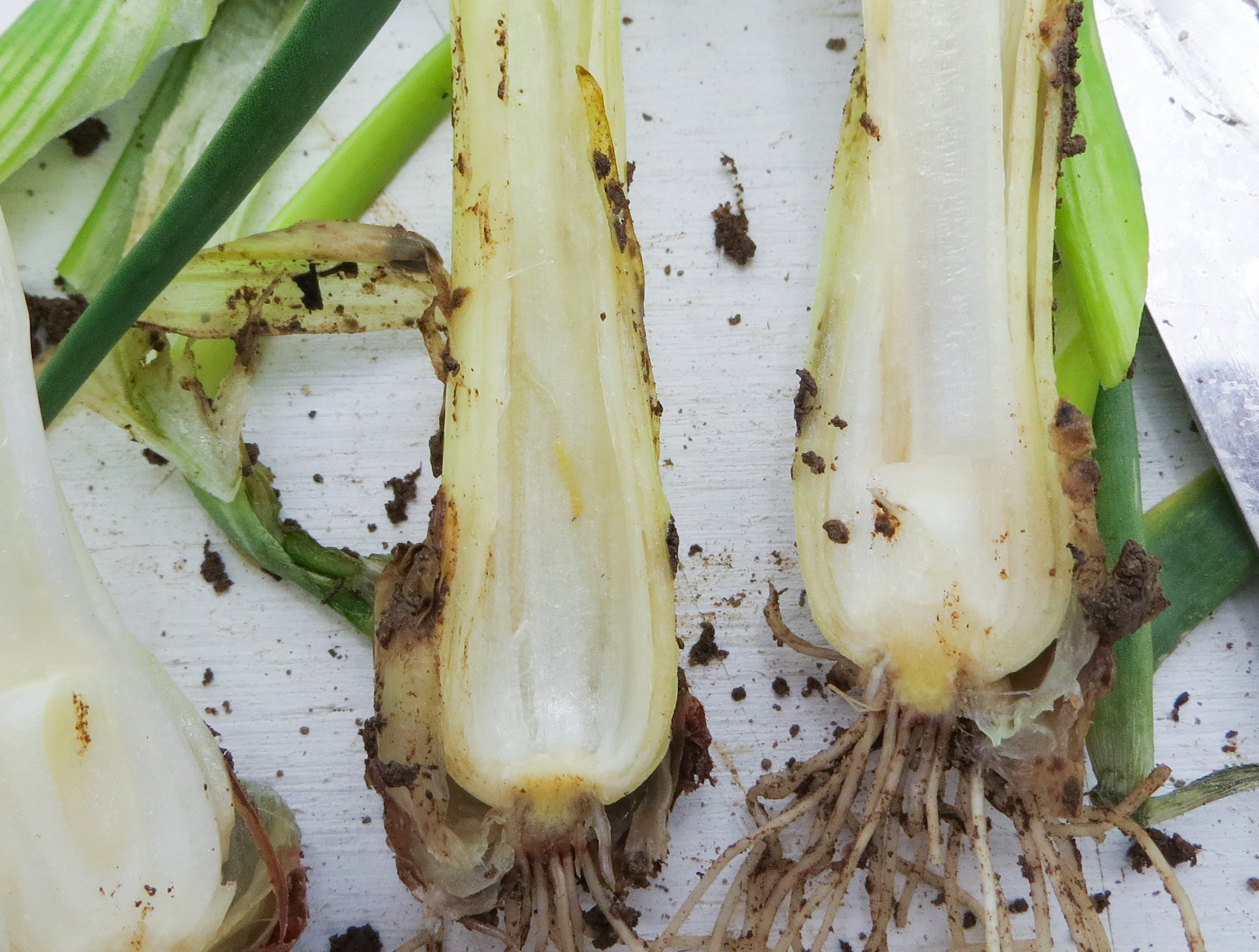 Larve dans un poireau