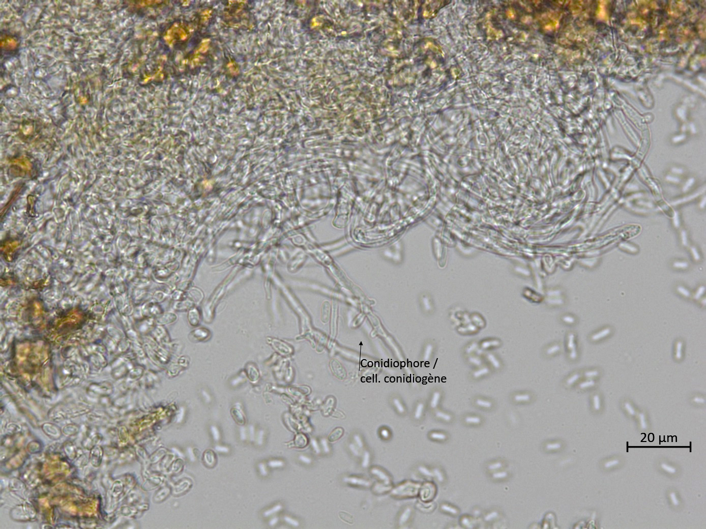 Conidiophores et cellules conidiogènes d'Elsinoa ampelina.