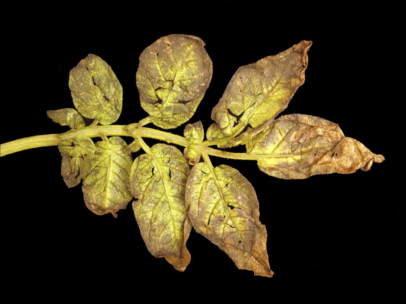 Plant : dépérissement, jaunissement et nécrose (brunissement et dessiccation). La mortalité des plants est plutôt rare.