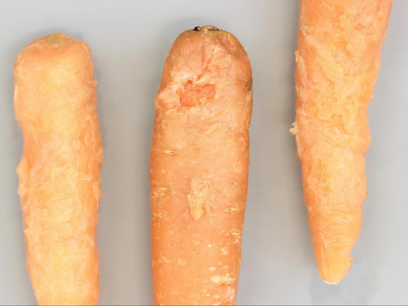 Le gel survient lorsque la température chute rapidement sous 0 °C alors que les plantes ne sont pas encore acclimatées. Les symptômes se manifestent rapidement lorsque la température redevient plus chaude. Les dommages sont irréversibles. Le gel augmente la perméabilité cellulaire, occasionnant une fuite du contenu cellulaire et la mort de la cellule. La carotte est affectée occasionnellement par le gel et les dommages sont mineurs.