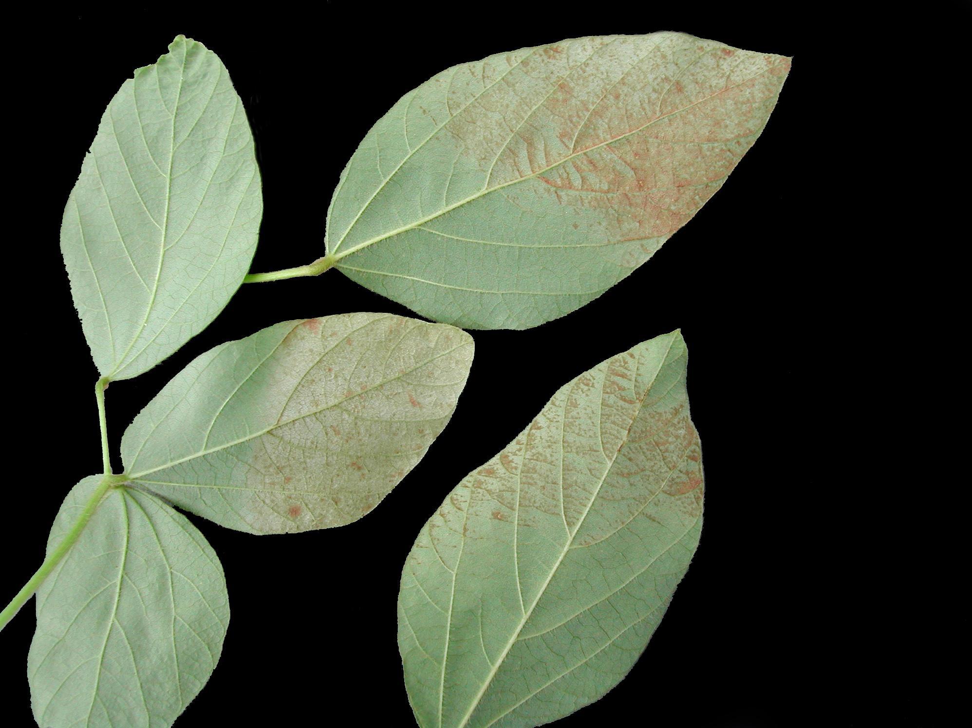 Sur les feuilles de soya, l’insolation peut être confondue avec l’ozone (bronzage des feuilles) et sur la tige, avec des infections bactériennes.