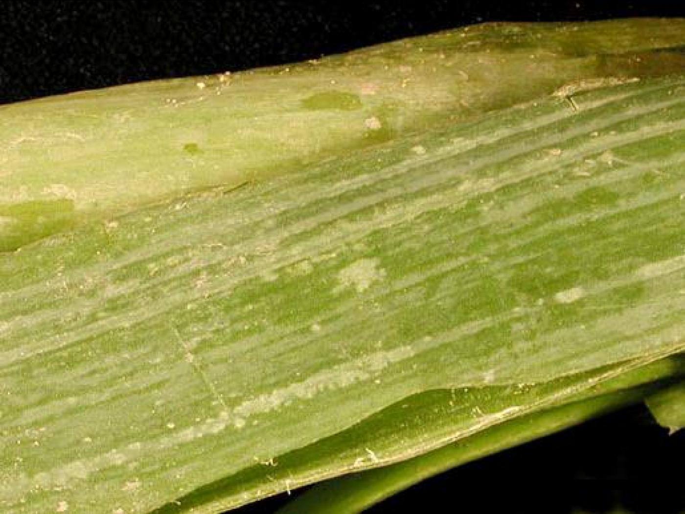 Légende: Stries longitudinales blanchâtres sur feuille d’oignon