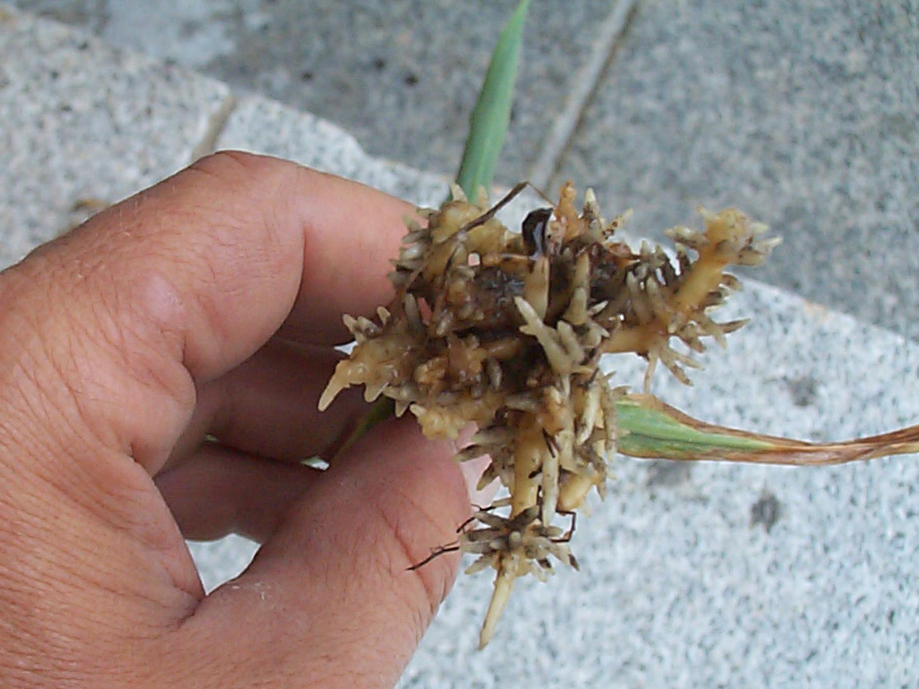 Racine : inhibition de l'élongation des racines engendrant le développement d'un système racinaire court, rabougri, cassant et ayant l'aspect d'un buisson. Les racines sont parfois jaunes à brunes.