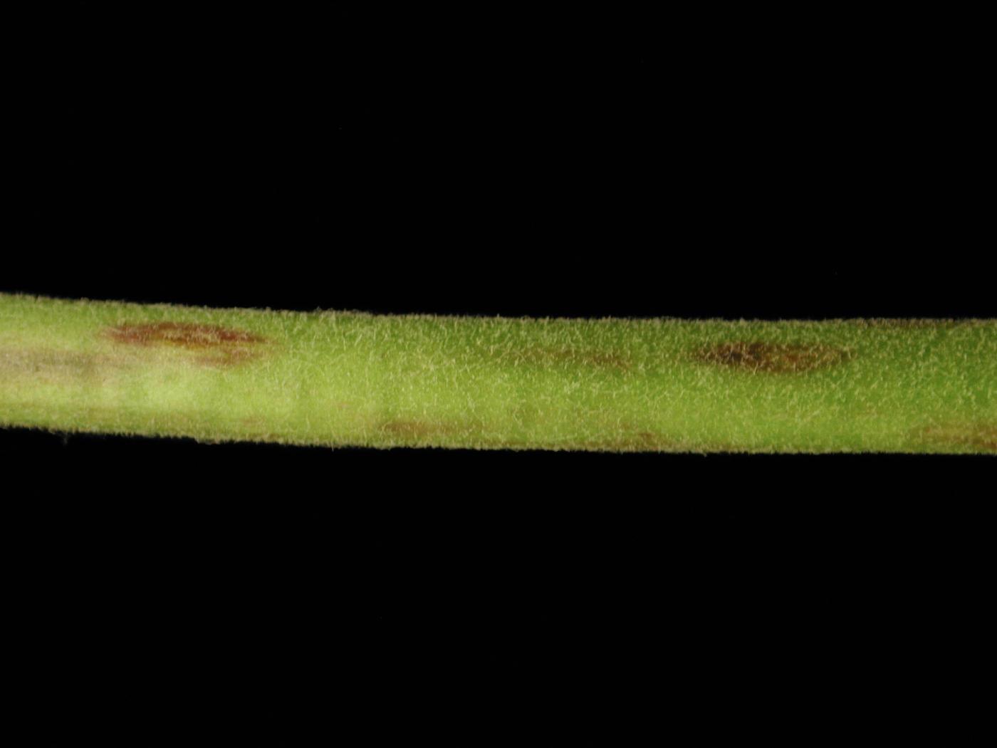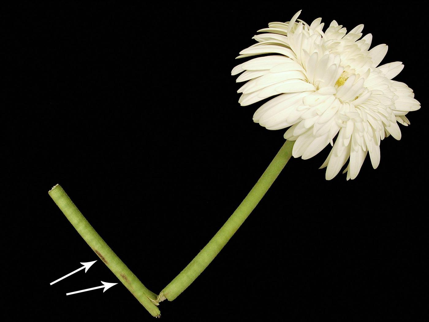 Légende: Taches pourpres sur pédoncule d'une fleur de gerbéra