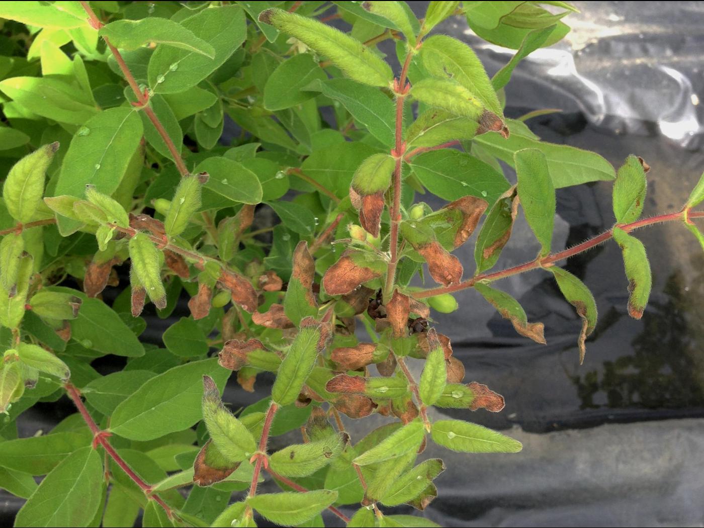 Feuille : Le feuillage flétrit, puis se dessèche rapidement. Le plant peut être partiellement ou complètement atteint.