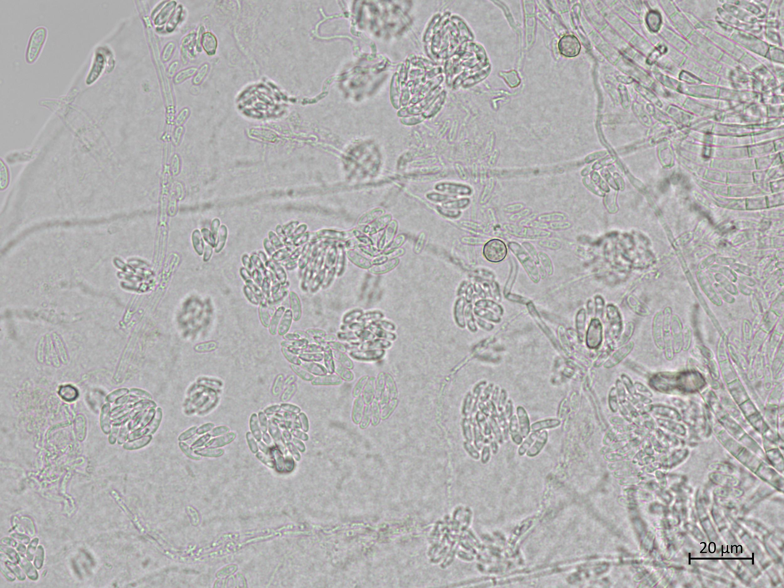 : Chlamydospores et amas de conidies de Fusarium oxysporum.