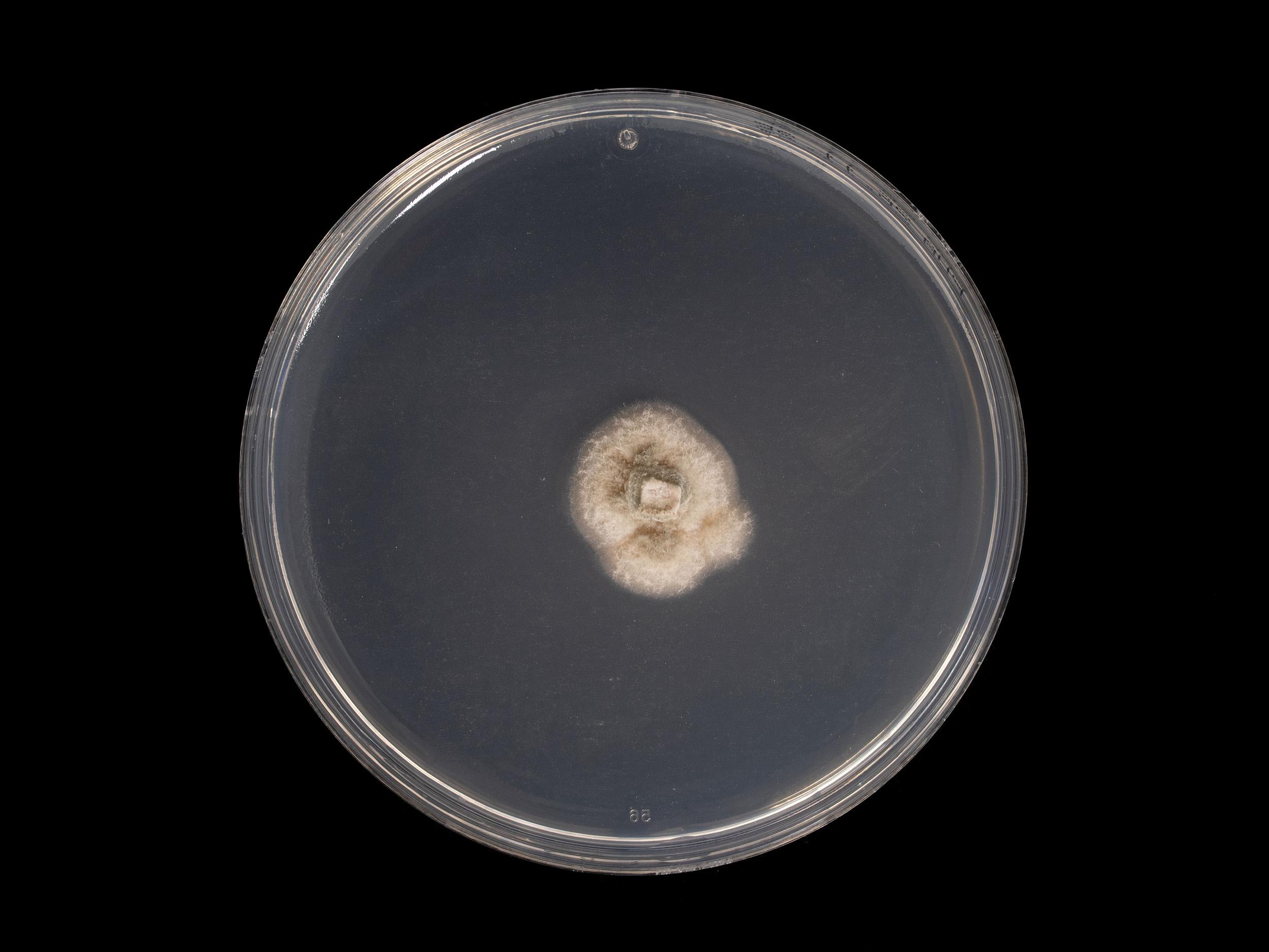 : Cadophora luteo-olivacea sur milieu PDA après 7 jours de croissance.