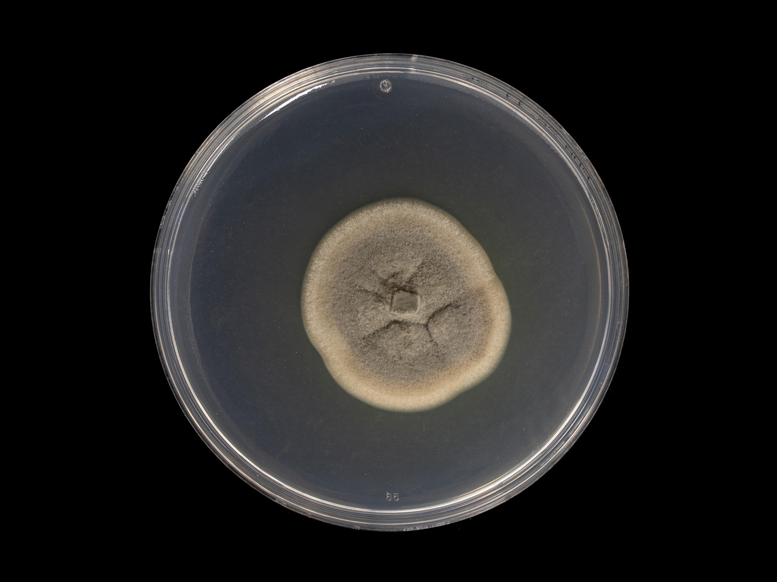 : Cadophora luteo-olivacea sur milieu PDA après 15 jours de croissance.