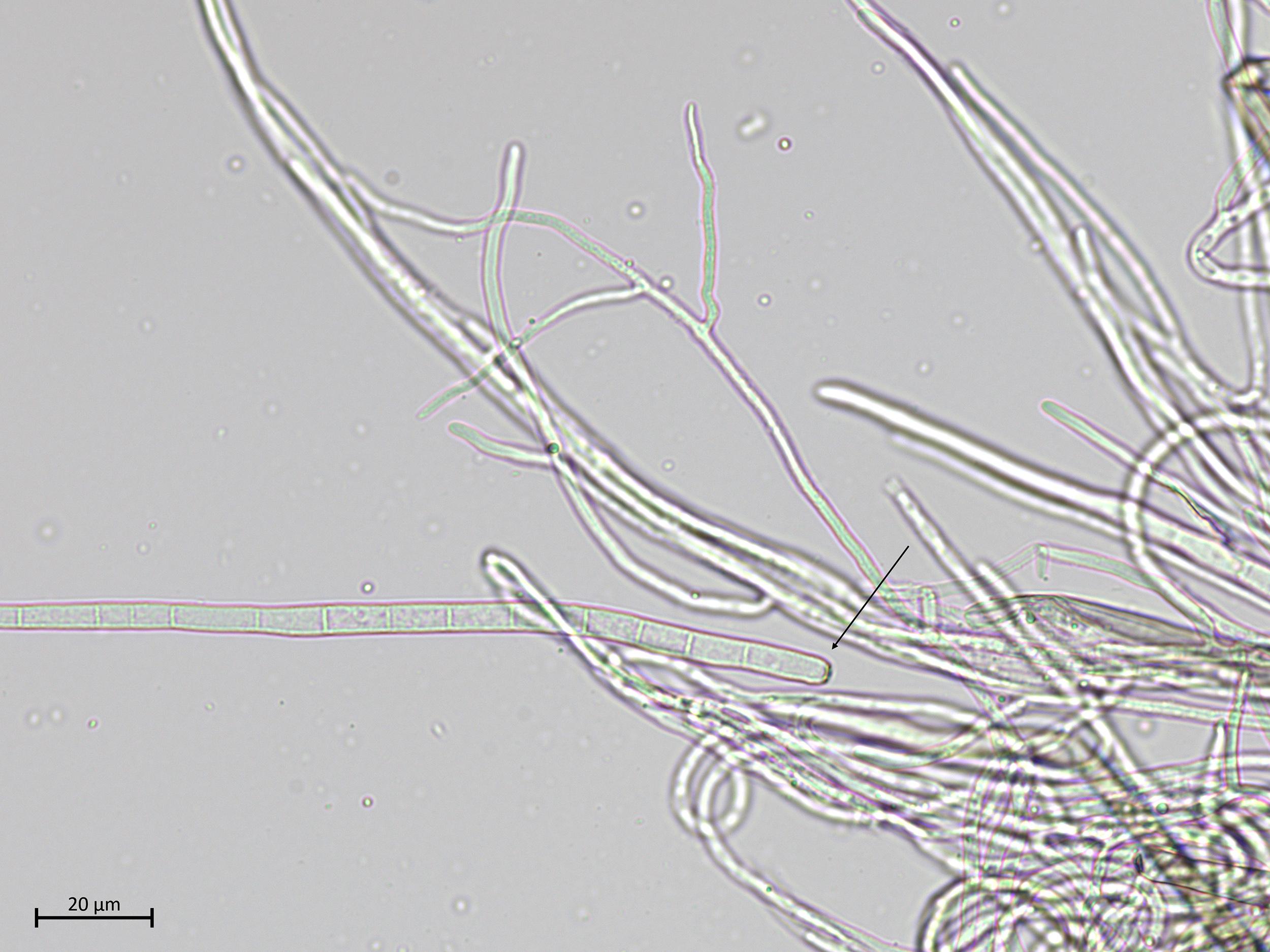 : Point d'attache à l'extrémité d'une conidie de Cercospora.