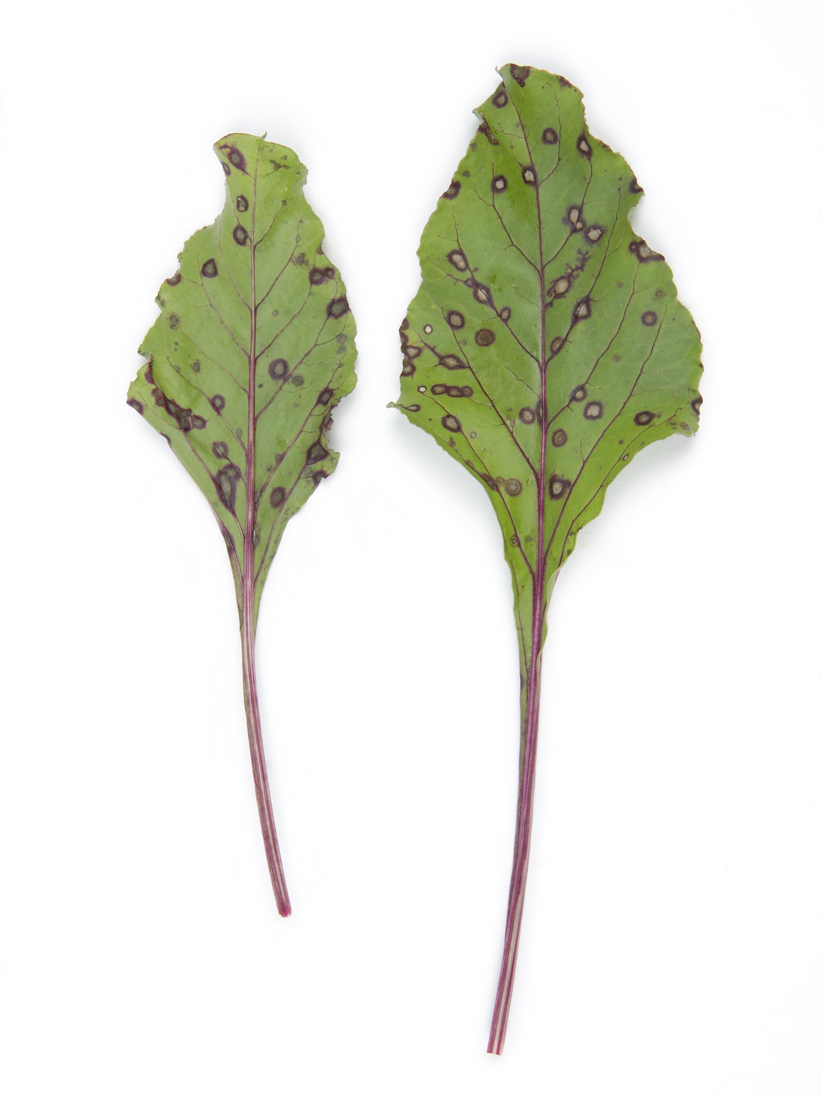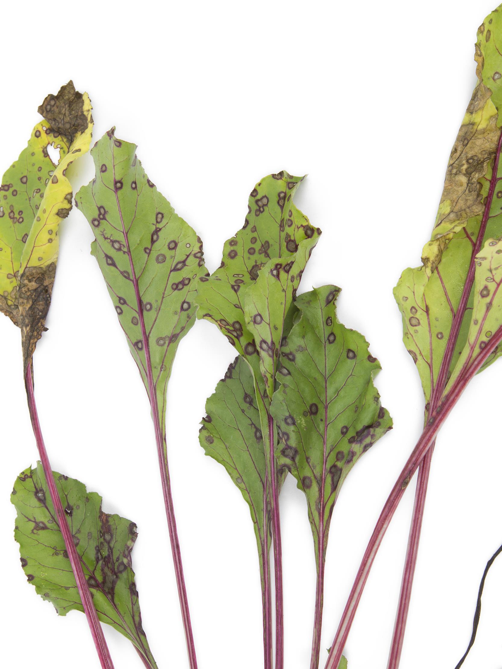 La face supérieure des feuilles de blé de printemps montre de minuscules taches blanches longitudinales concentrées vers l’apex de la feuille. Ces symptômes sont caractéristiq...