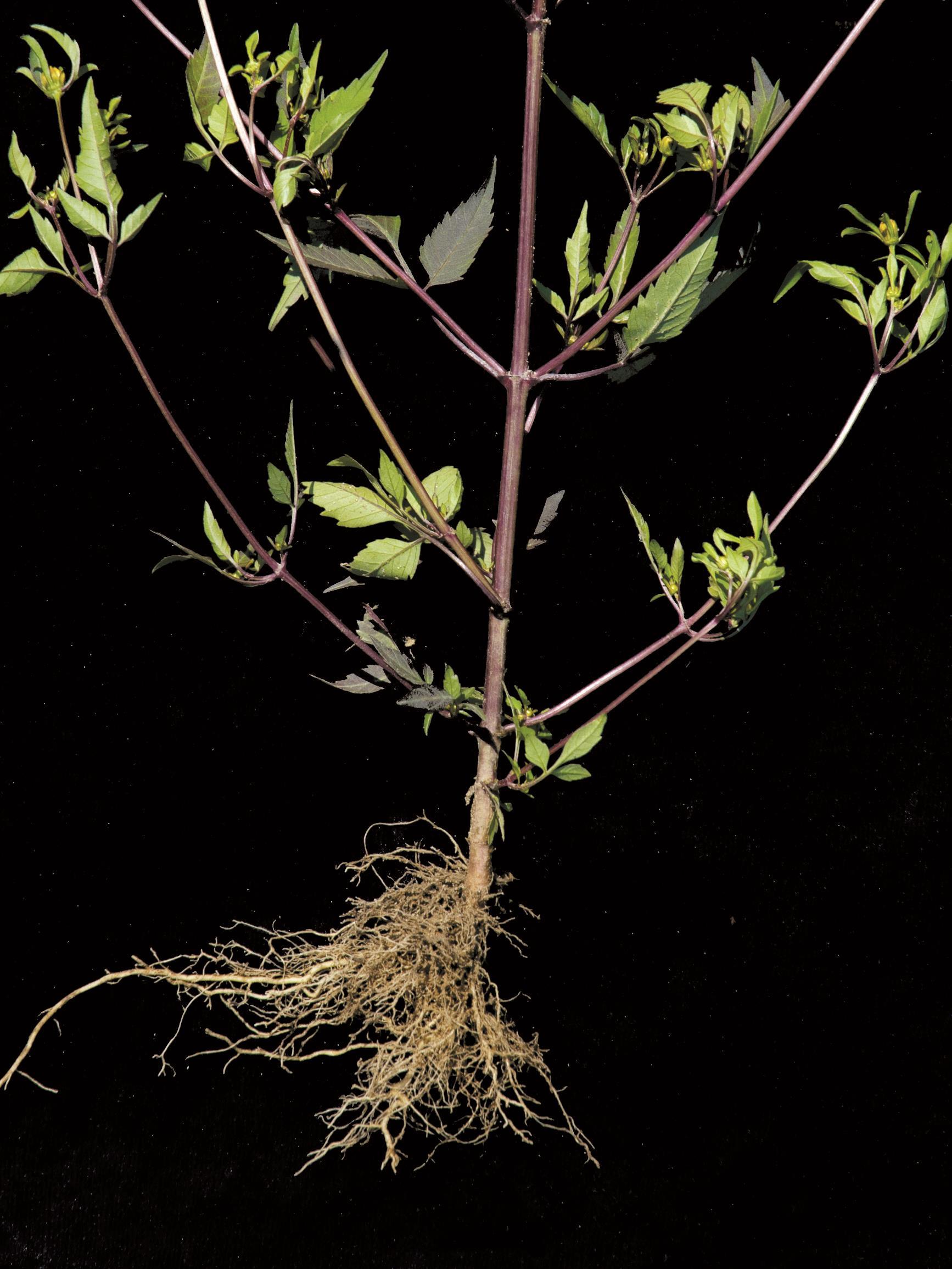 Sur des pousses de blé de printemps, les racines sont faiblement à moyennement développées. Le système racinaire du plant du bas est particulièrement affecté. Il est impossibl...