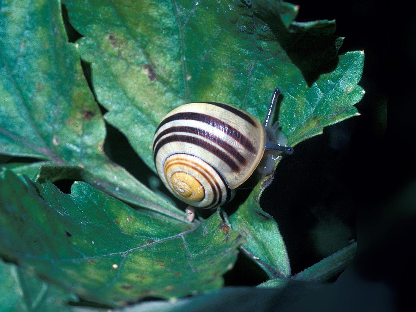 Les escargots sont hermaphrodites. L'accouplement peut durer de trois à huit heures. Les organes génitaux sont situés derrière la tête. Lors de la copulation, un aiguillon rempli de mucus est éjecté du pore génital pour le transfert du sperme. La photo montre Cepaea hortensis, un escargot commun des jardins. Une espèce similaire C. nemoralis, se distingue par la lèvre foncée (renflement transverse de la coquille près de la tête). Les deux espèces sont polyphages sur de nombreux végétaux. Les Cepeae spp. sont polychromatiques, arborant une grande variation de couleurs. Ils fréquentent de nombreux habitats ouverts ou fermés tels que des marais, des champs ou des boisés. De nombreux aspects de la biologie des escargot restent à élucider.