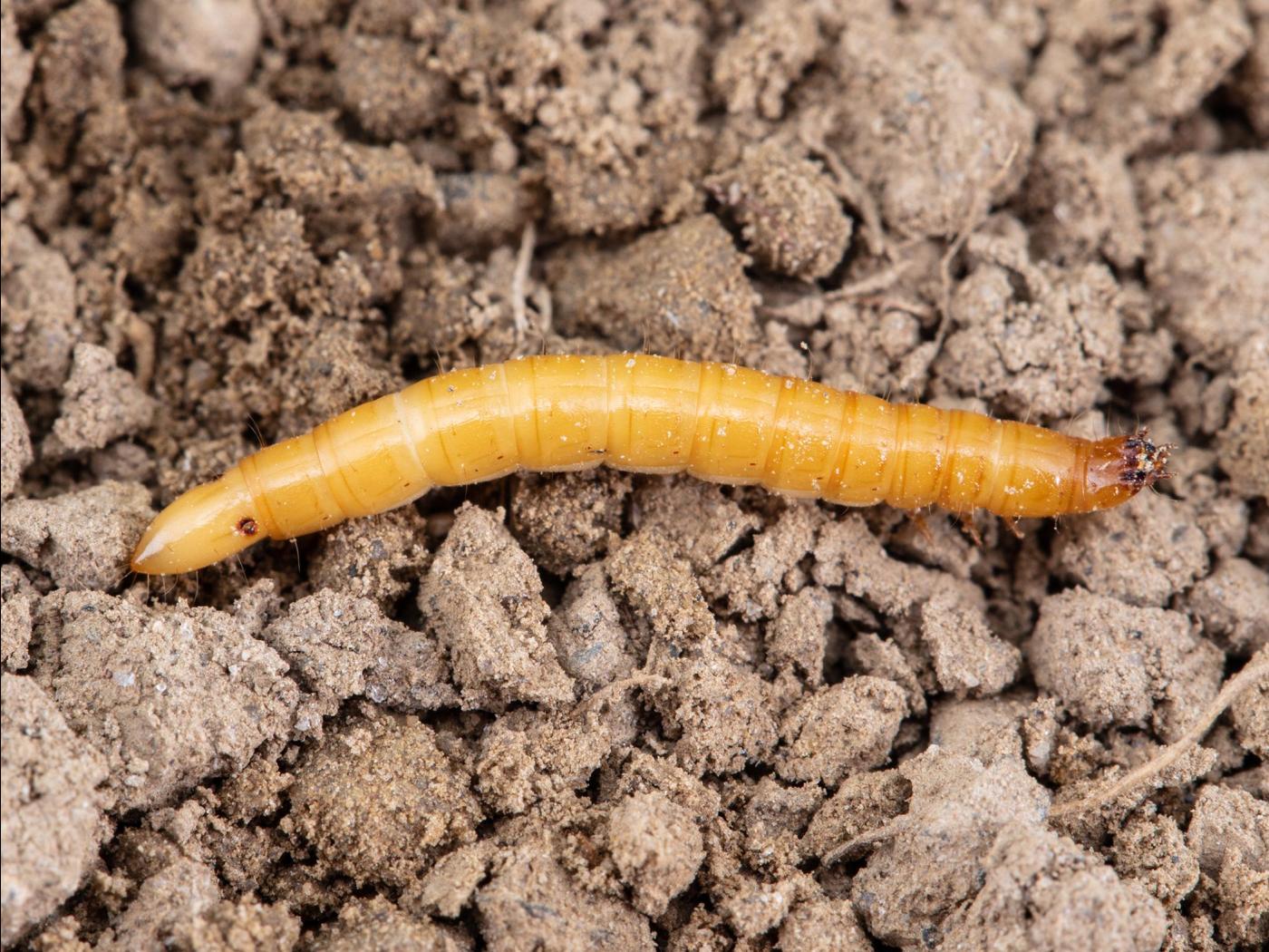 Légende: Larve de ver fil-de-fer du genre Agriotes