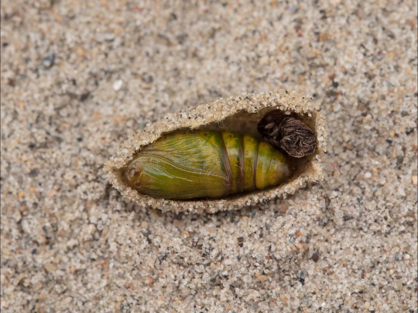 Chrysalide : environ 10,0 à 12,0 mm; de couleur brun verdâtre.