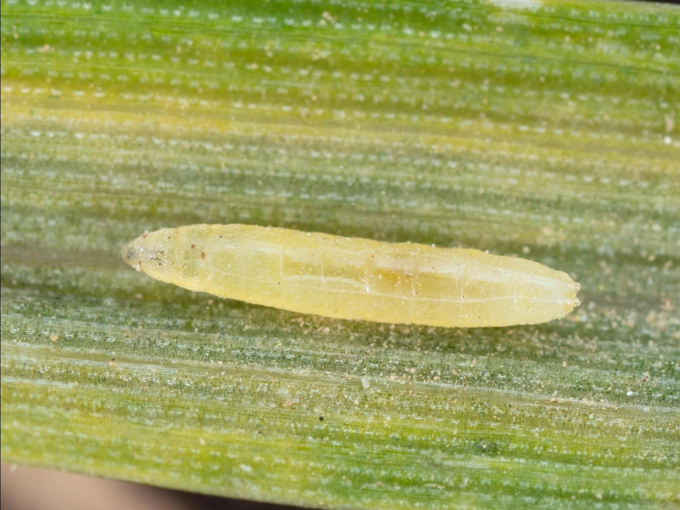 Larve : 4,0 mm à maturité; le corps est fusiforme et de couleur jaunâtre; deux petits tubercules sont présents au bout de l’abdomen.