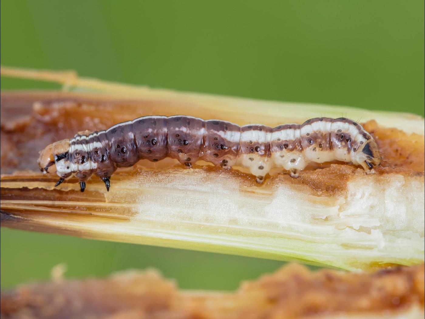 La chenille de cette espèce est très polyphage et peut se développer sur plus de 200 plantes-hôtes, dont un grand nombre de cultures maraîchères et fruitières. Elle est principalement connue pour les dommages qu'elle cause dans les cultures de maïs. La larve se développant à l'intérieur des plants de maïs cause un affaiblissement des tiges, qui deviennent cassantes en moins résistantes aux forts vents.