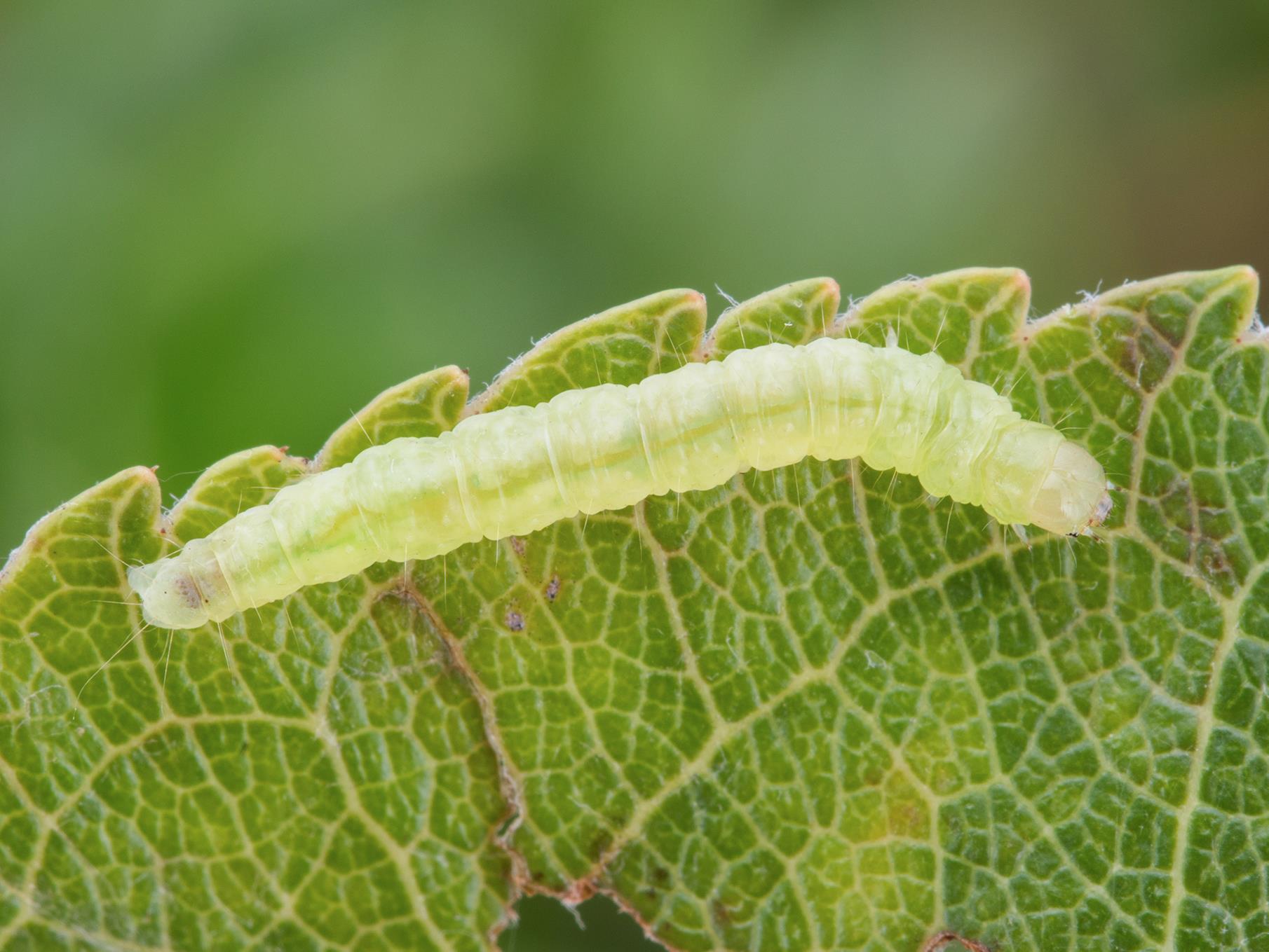 Larve: 15,0 à 17,0 mm; le corps est vert pâle ou légèrement jaunâtre; la tête est verdâtre lorsque la larve est jeune et elle devient brun pâle par la suite.