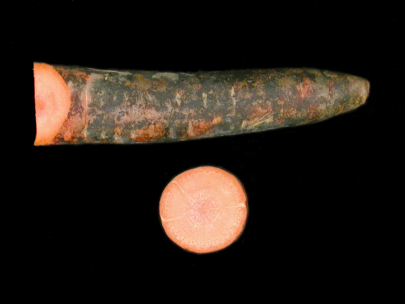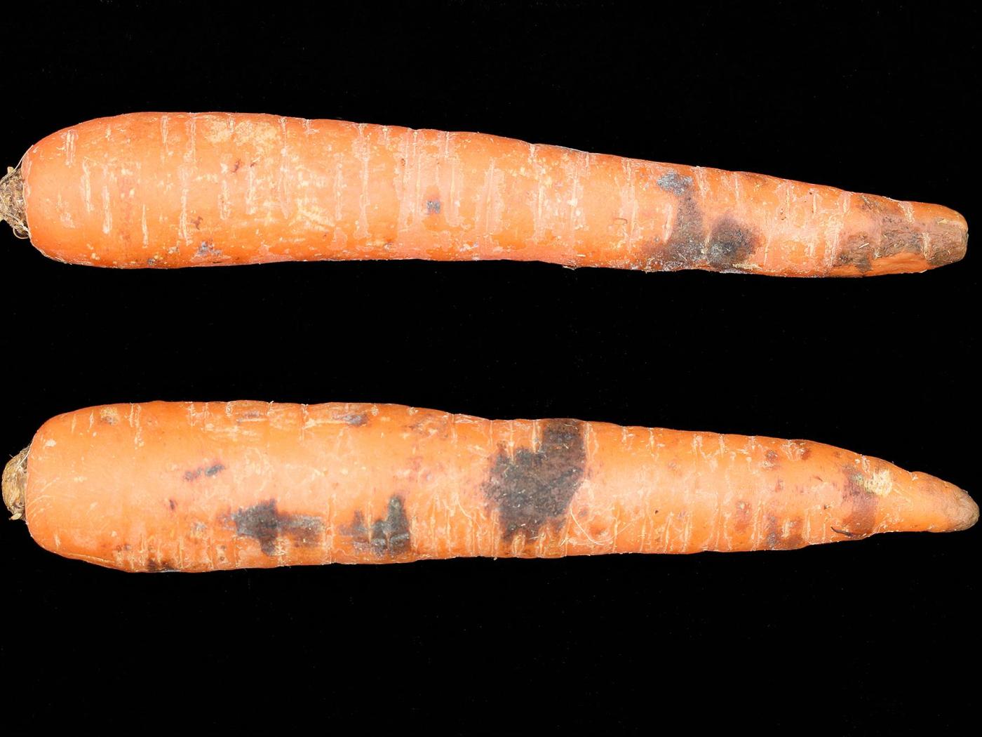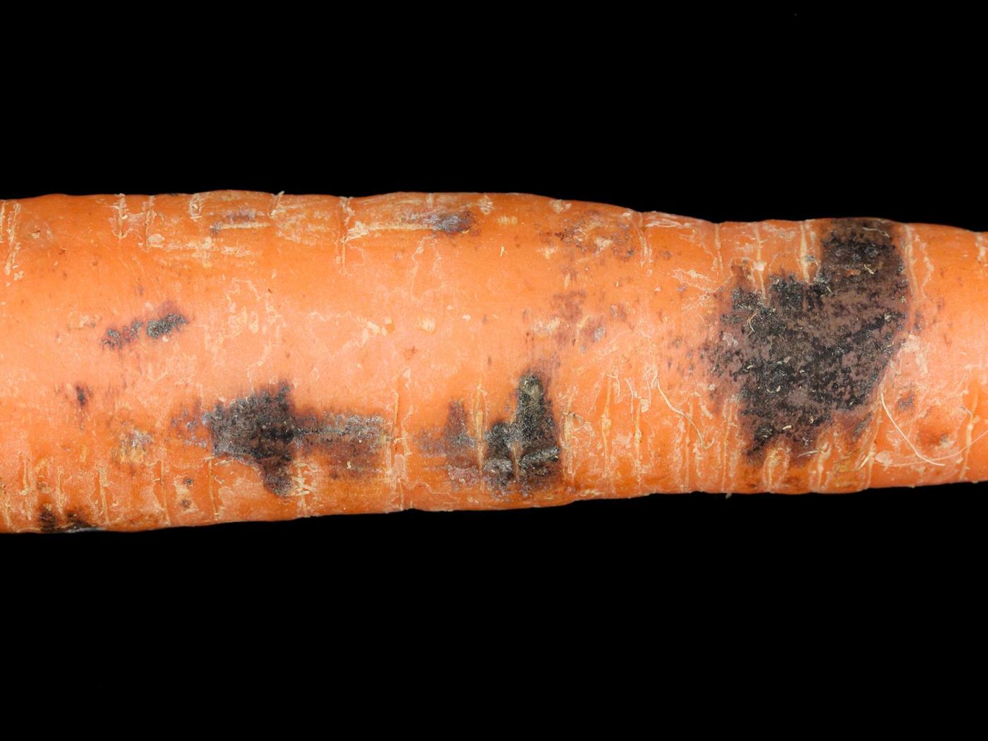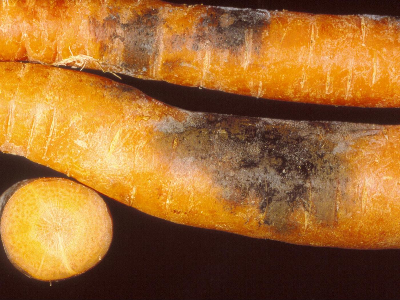 Chez la carotte, les symptômes ne sont visibles que lorsqu’elles ont été lavées, classées et entreposées dans des sacs de polyéthylène, à des températures et des taux d’humidité relative trop élevés. Le problème est rarement grave lorsque les carottes sont entreposées dans des conditions optimales (0 et 1 °C et 98 à 100 % d’humidité relative). C’est le contact entre le sol infecté et les blessures causées lors de la récolte ou en postrécolte qui initient les infections.