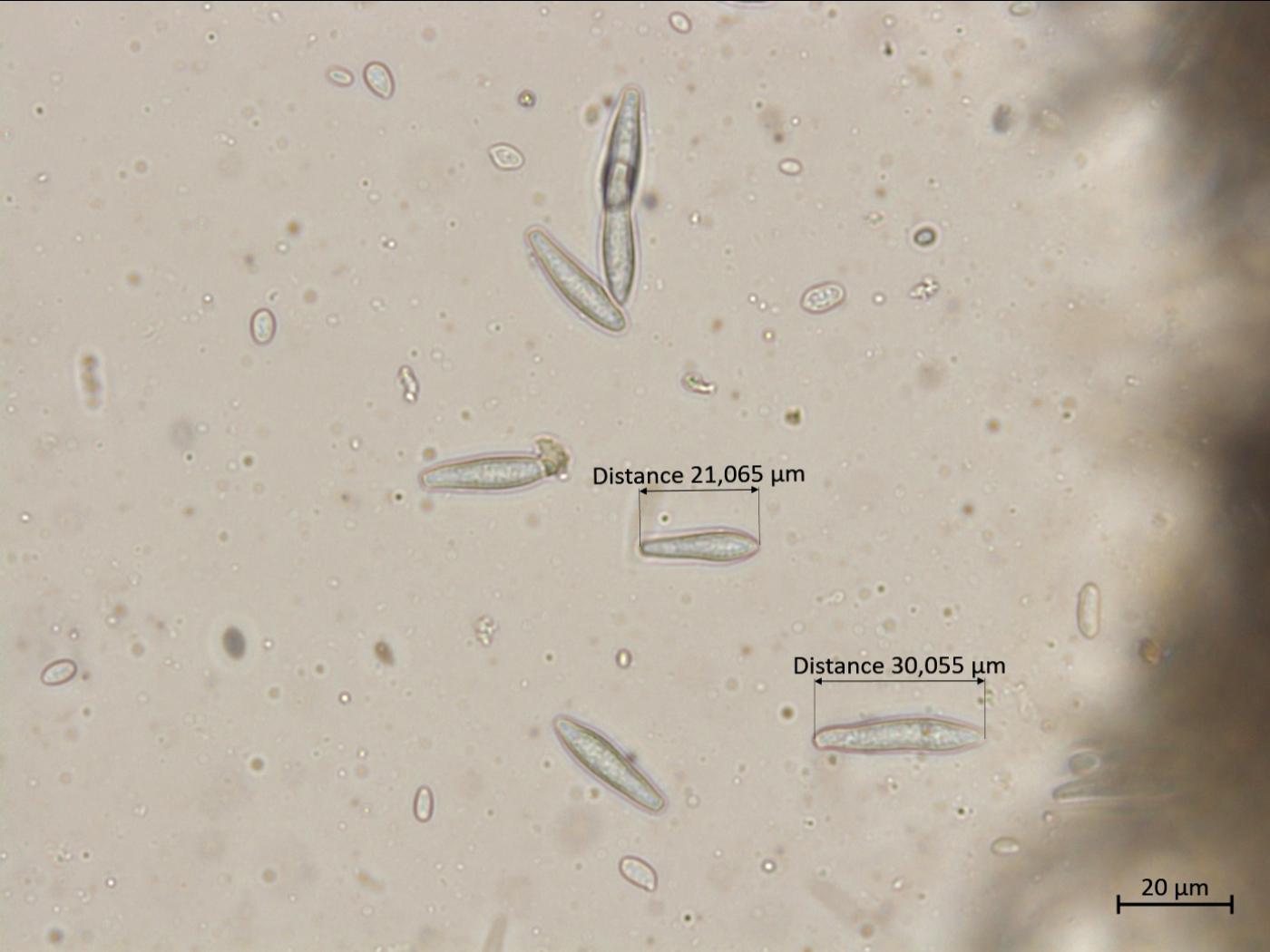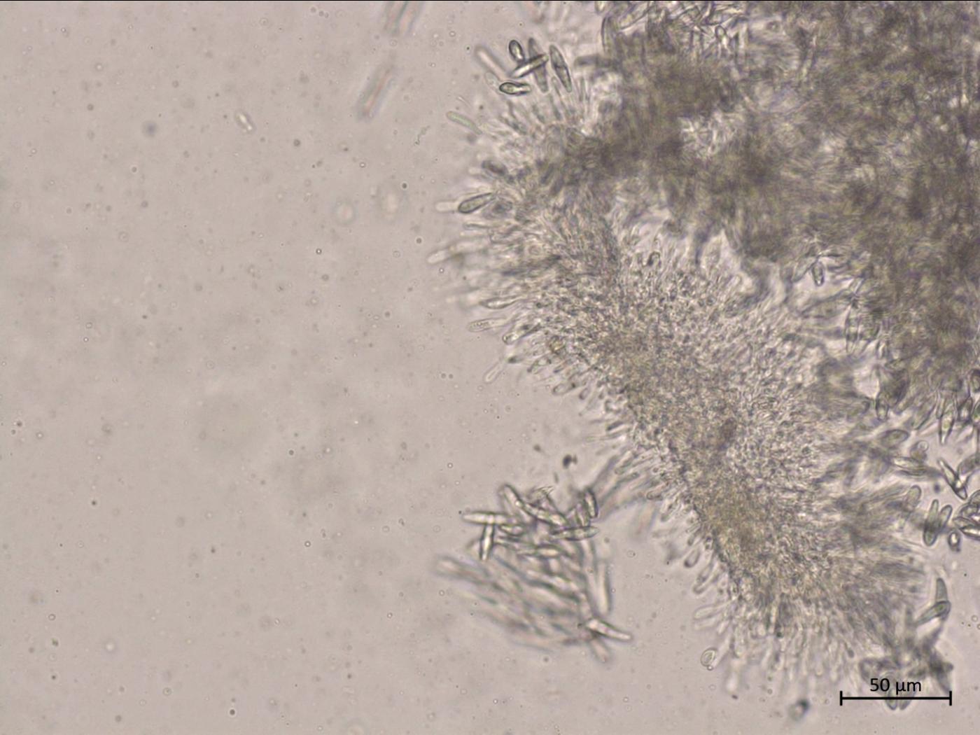 Légende: Conidiophores et conidies de Botryosphaeria dothidea.