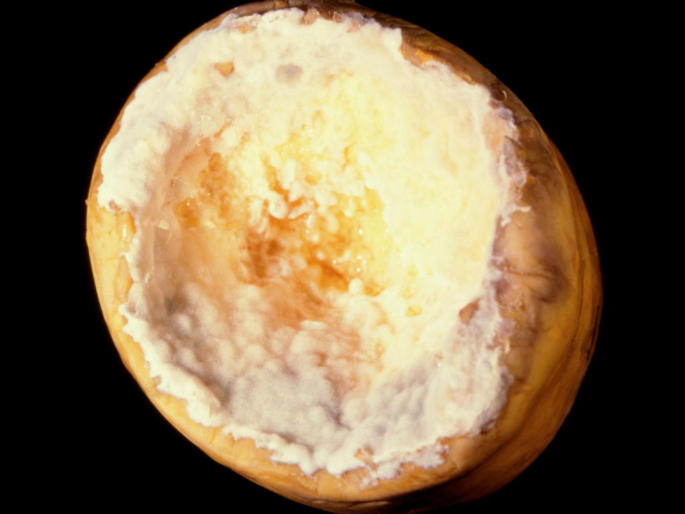 Légende: Pourriture et mycélium blanc sur courge musquée