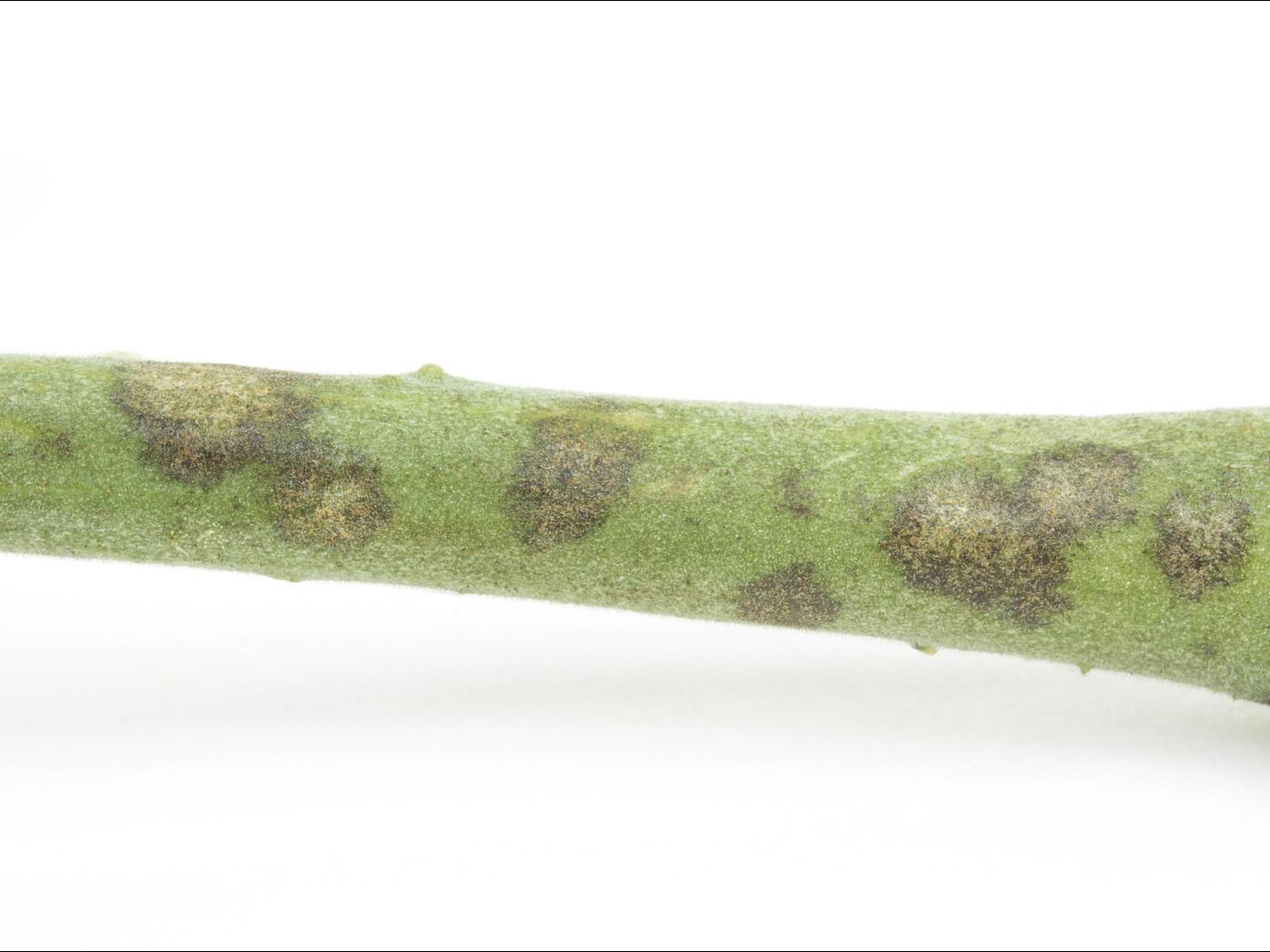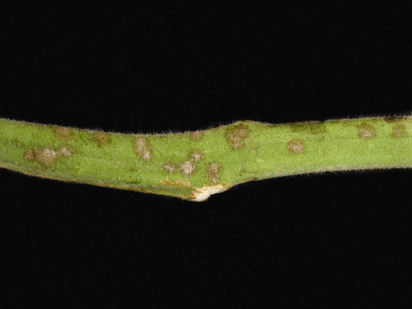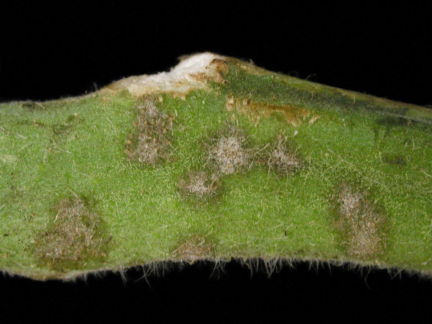 Tige : chez Oidium neolycopersici seulement, présence de taches circulaires ayant une teinte grisâtre. Les tissus deviennent parfois bruns.
