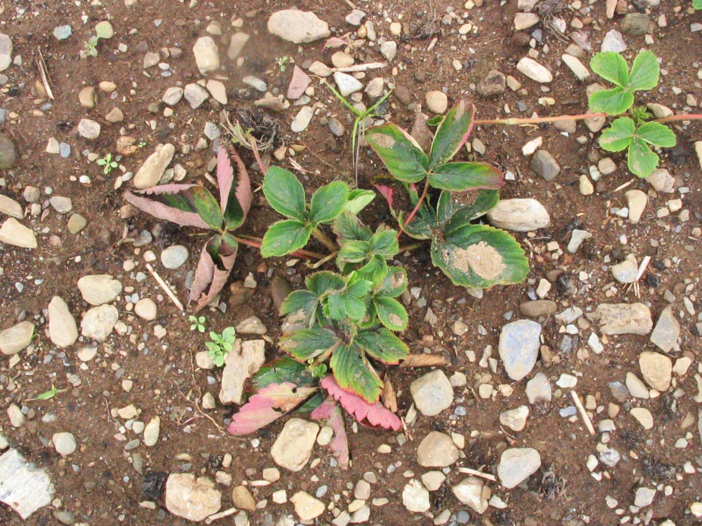 Plante entière : faible développement, rabougrissement, dessèchement et dépérissement des plants. La production de stolons peut être restreinte.
