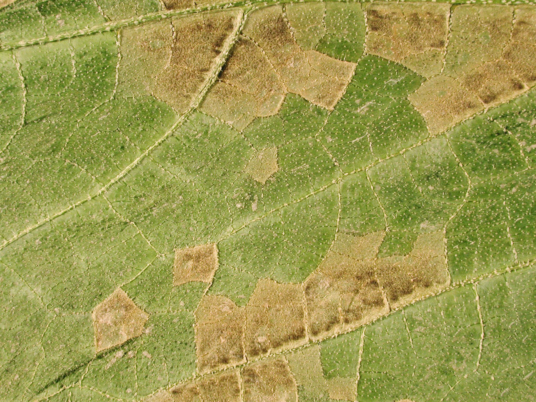 Le tout premier symptôme de cette maladie peut être confondu avec une maladie virale. En effet, la répartition des taches sur le limbe peut ressembler à celle d'un « damier » et ce symptôme peut être interprété comme une mosaïque en taches.