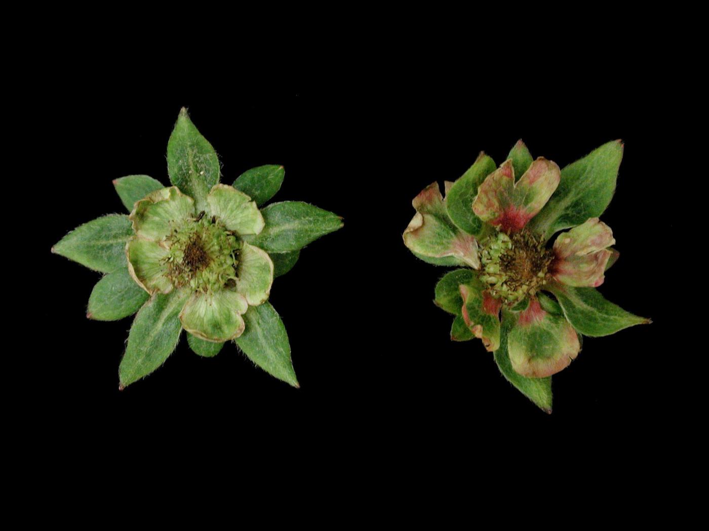 Le pétale vert peut être confondu avec le phytoplasme de la jaunisse de l’aster. Le pétale vert affecte essentiellement la fleur et la coloration rouge des pétales permet de les distinguer. Le phytoplasme de la jaunisse de l’aster affecte plus sévèrement les organes (feuilles, fleurs et fruits) et les plants affectés meurent. La carence en bore peut causer des symptômes similaires sur les fruits, mais les fleurs infectées auront été sans pétale vert.